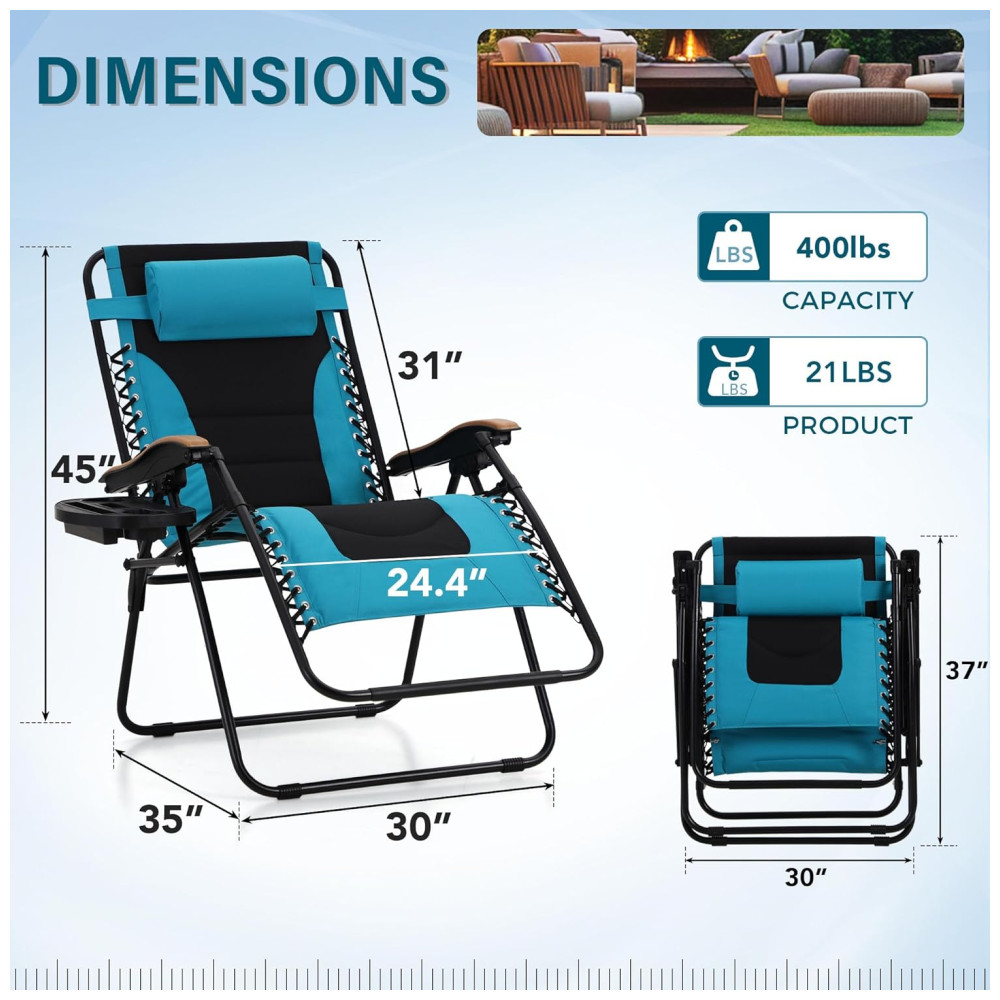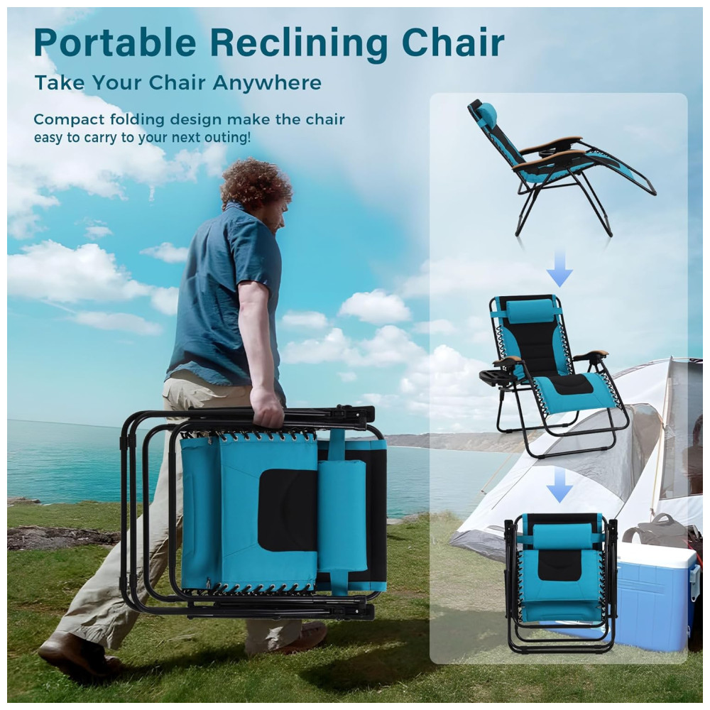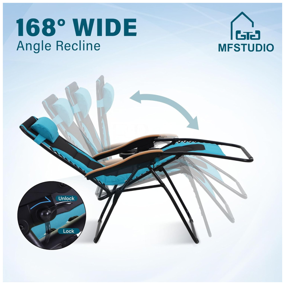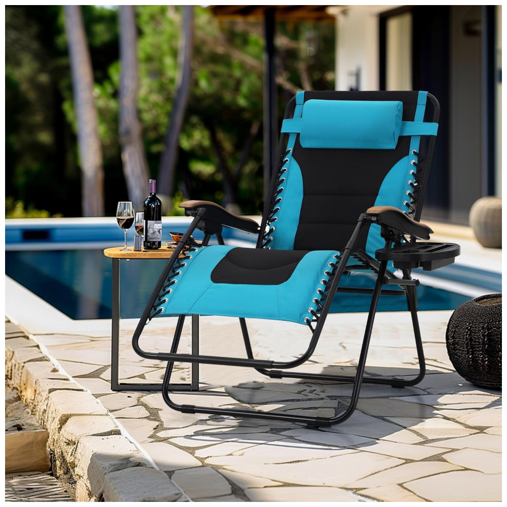 Cadeira Reclinável Ajustável Gravidade Zero com Apoio de Cabeça e Porta Copos, MFSTUDIO, Azul