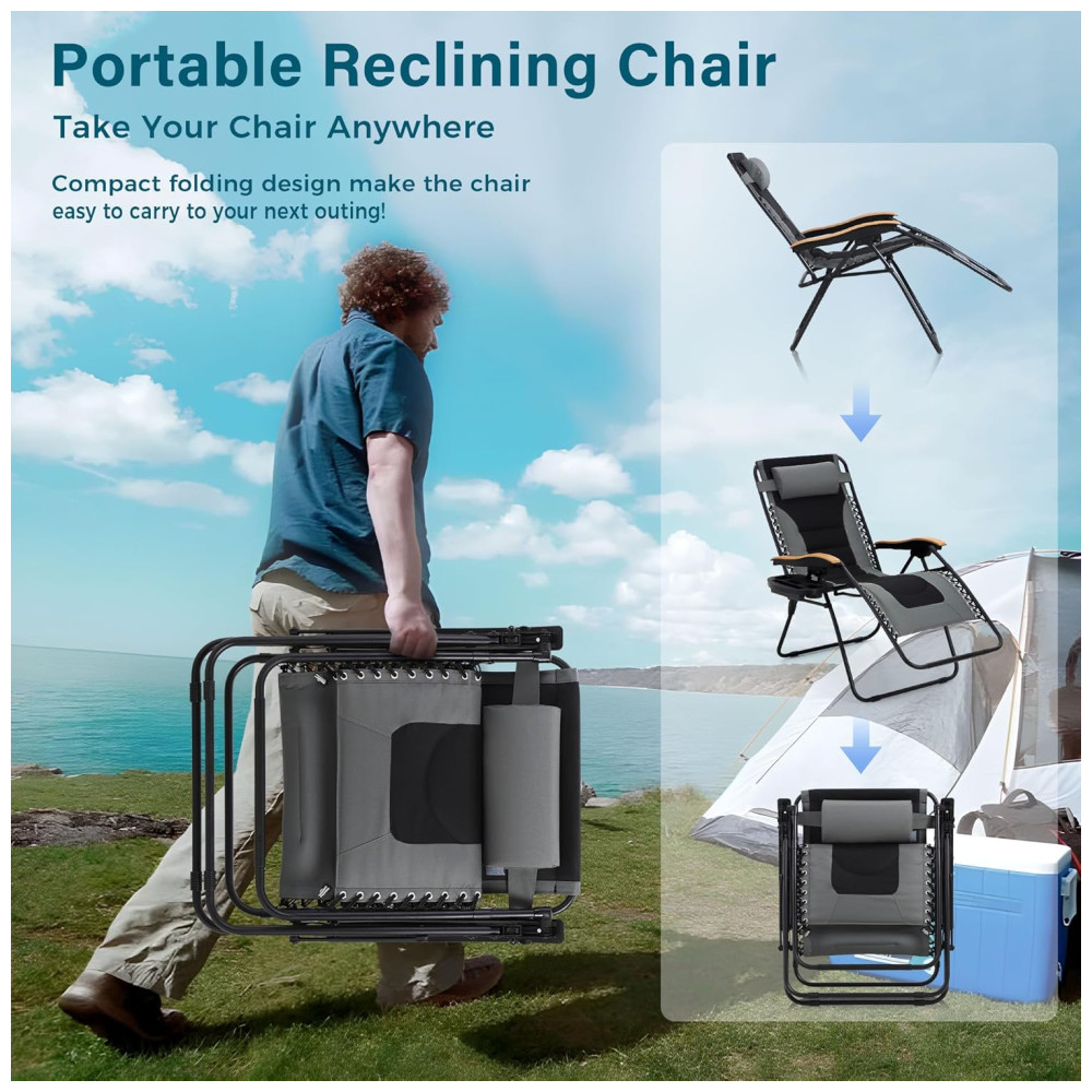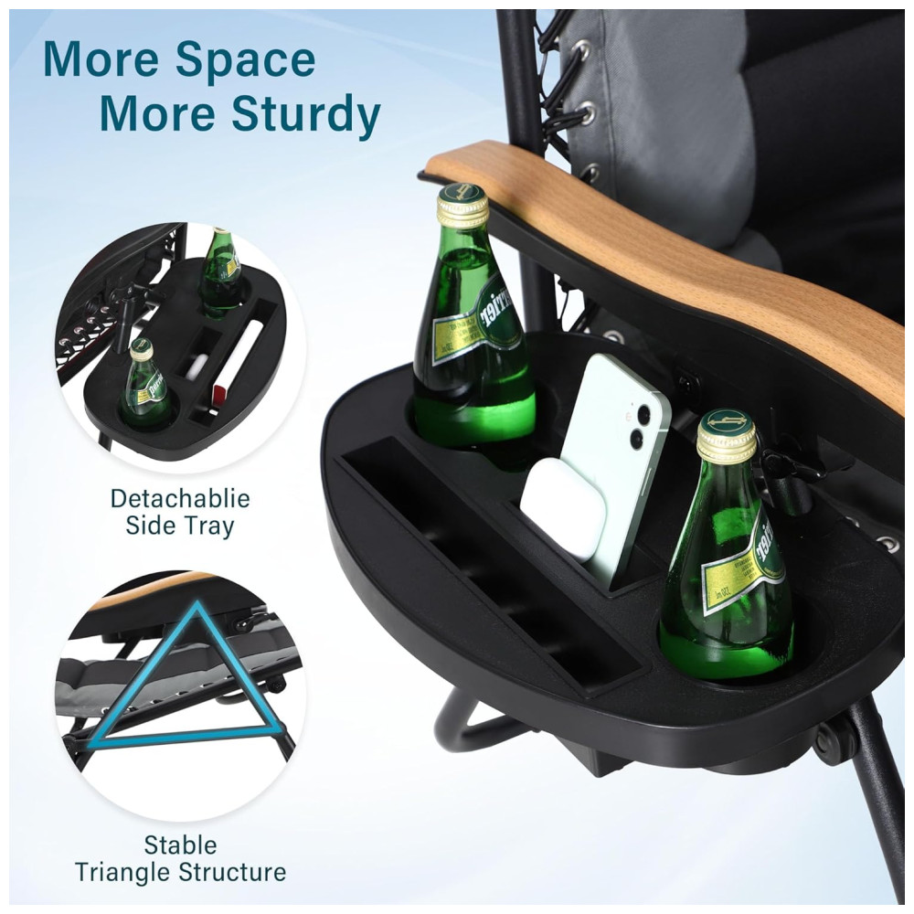 Design ergonômico acolchoado O design ergonômico com assento totalmente acolchoado, travesseiro destacável e apoio de braço com padrão de madeira proporcionam extremo conforto e aliviam o estresse. Uma bandeja de porta copos lateral removível para acessibilidade conveniente. Ideal para desfrutar do seu tempo interior e exterior. Faz uma excelente adição ao quarto, varanda, jardim e pátio. Perfeito para camping com motor house, férias na praia ou descanso à beira da piscina