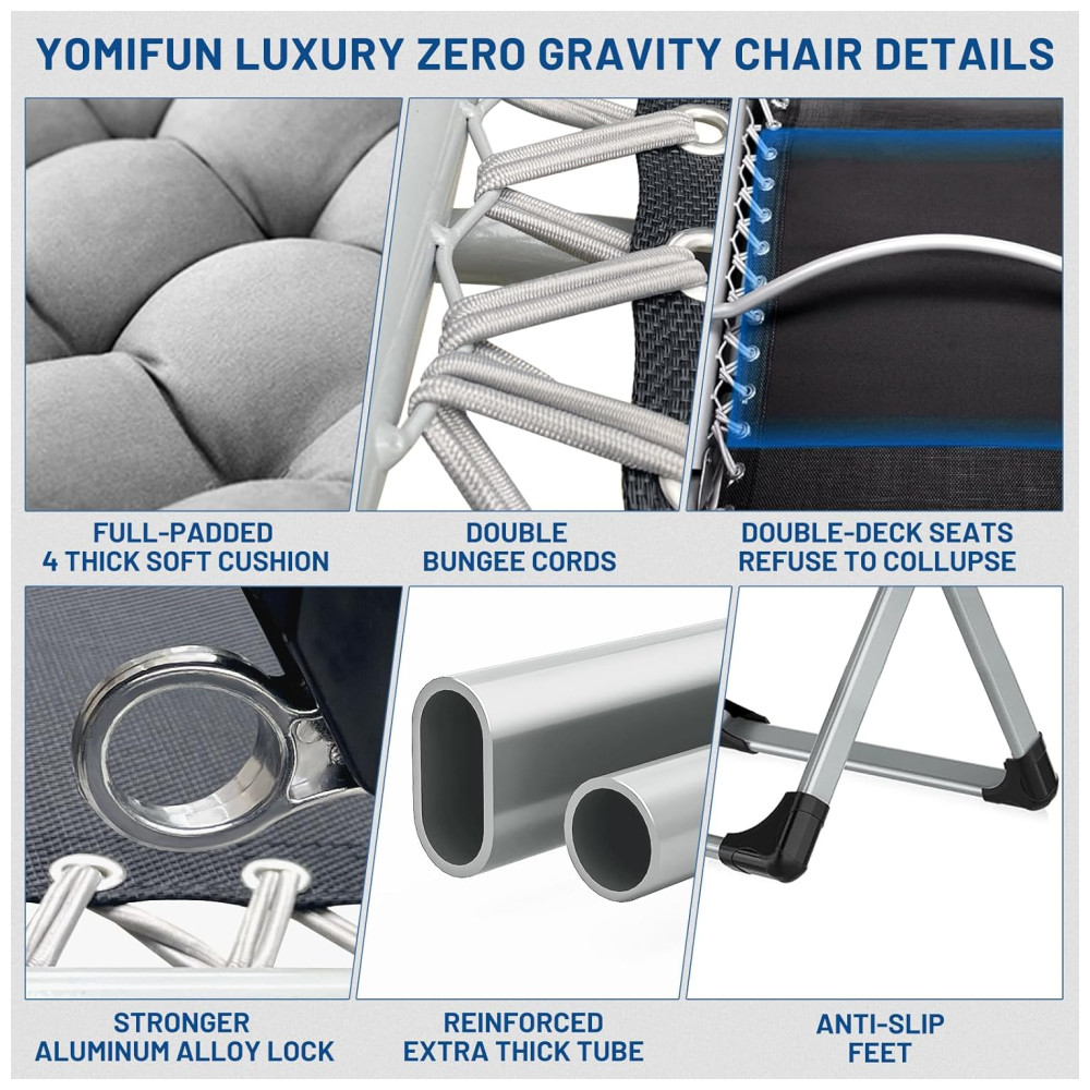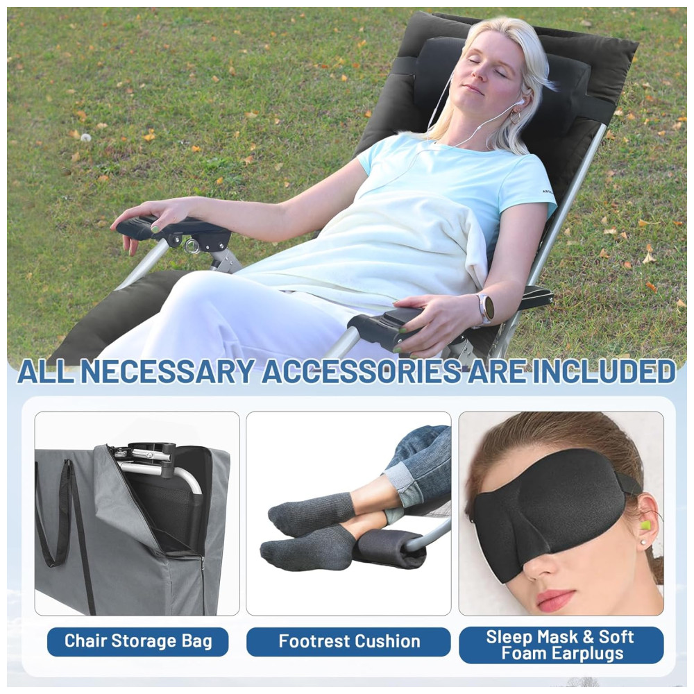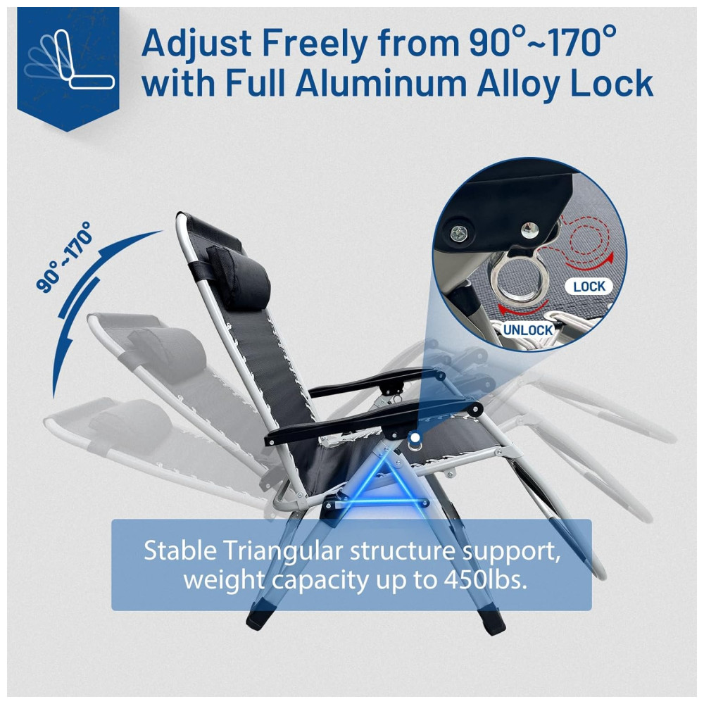 Facilmente bloqueável e ajustável Como este é um tipo de poltrona reclinável de gravidade zero projetada com um sistema reclinável com trava, você pode ajustar seu grau de reclinação de 90 a 160 facilmente, permitindo que você relaxe e aproveite ao máximo um bom tempo.