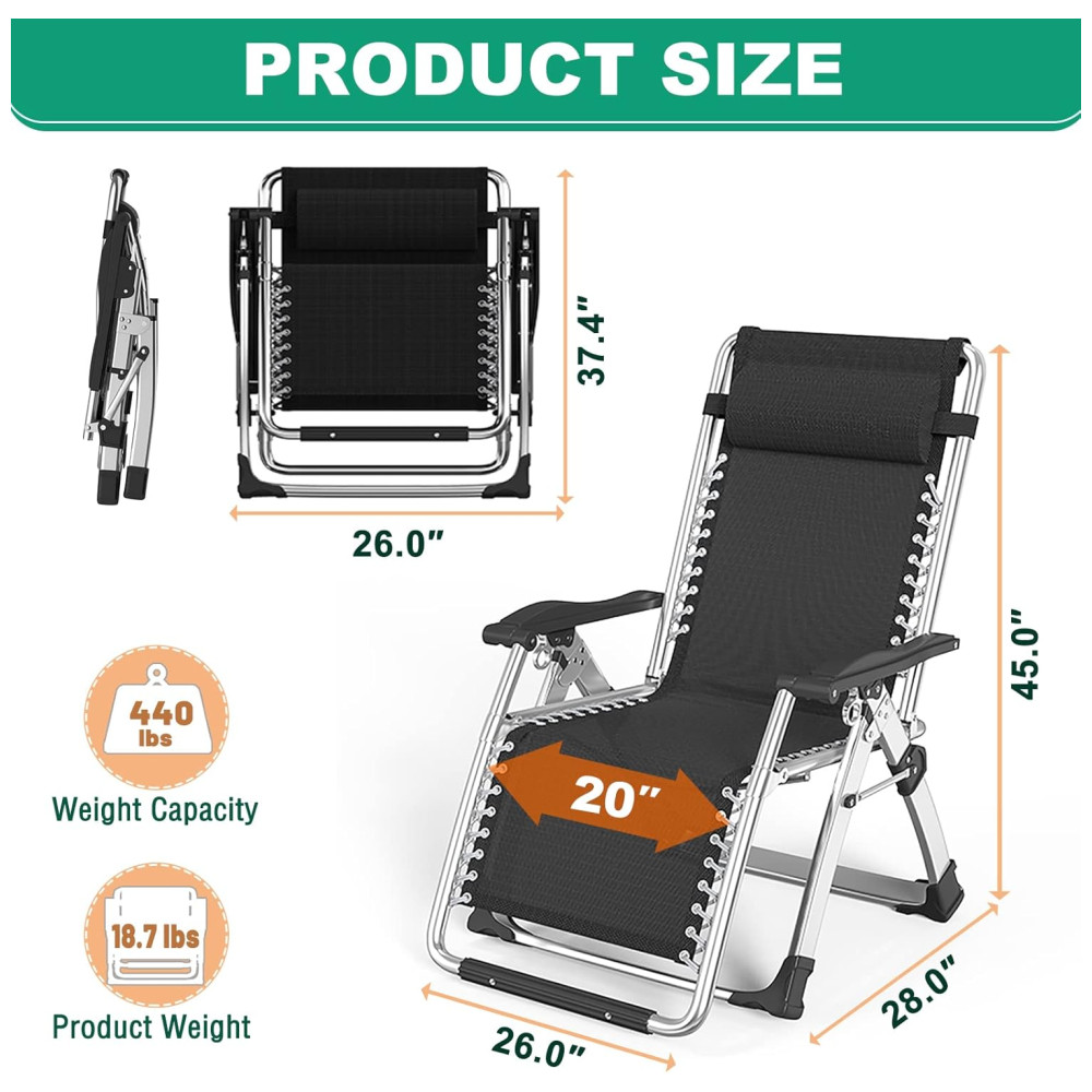 SERVIÇOS PESADOS Nossa cadeira de gravidade zero suporta até 200 kg. O tubo de aço é engrossado, para que a cadeira não balance ou desmorone, e a capacidade de carga seja maior e mais segura. Atualizando o tecido para tornar o sono mais confortável