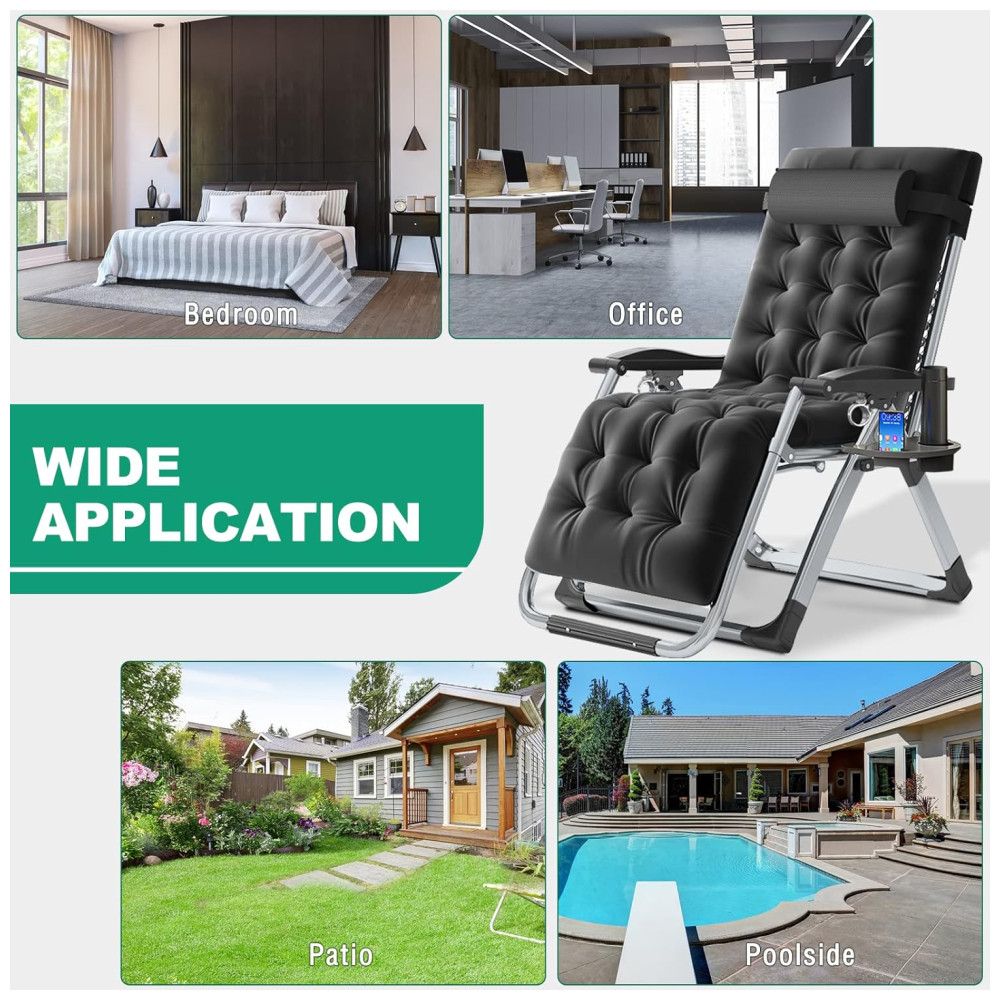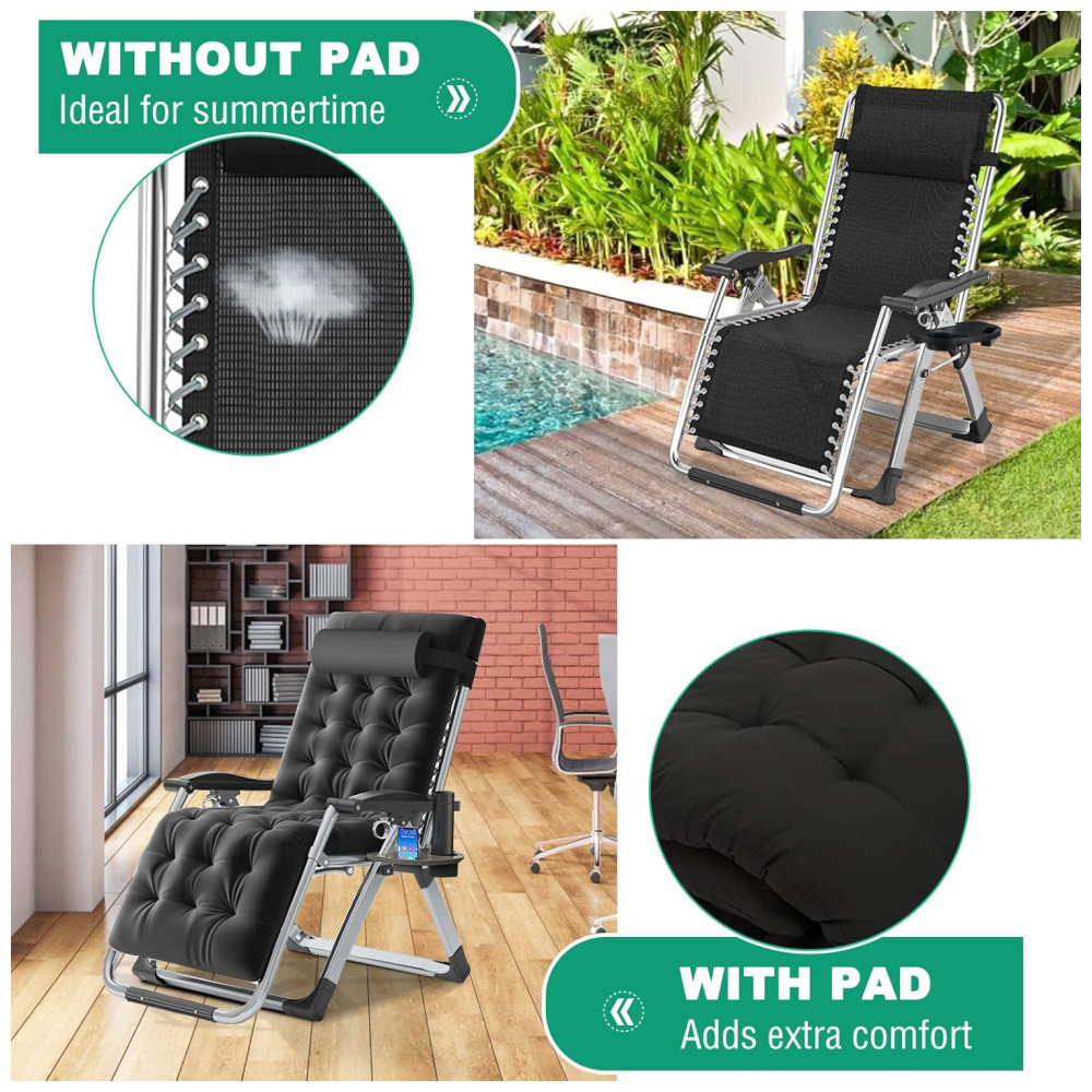ALMOFADA MACIA REMOVÍVEL A almofada macia adiciona conforto extra. mas também pode ser removido para respirabilidade no verão. Além disso, a espreguiçadeira é muito fácil de instalar e pode ser facilmente dobrada para facilitar o zenamento e o manuseio