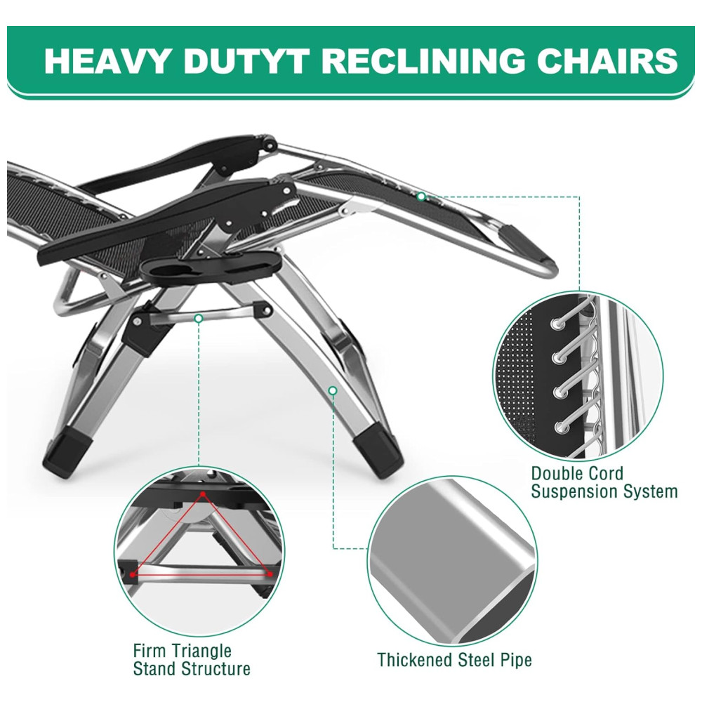 SERVIÇOS PESADOS Nossa cadeira de gravidade zero suporta até 200 kg. O tubo de aço é engrossado, para que a cadeira não balance ou desmorone, e a capacidade de carga seja maior e mais segura. Atualizando o tecido para tornar o sono mais confortável