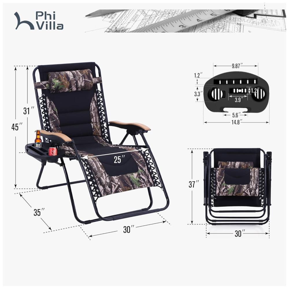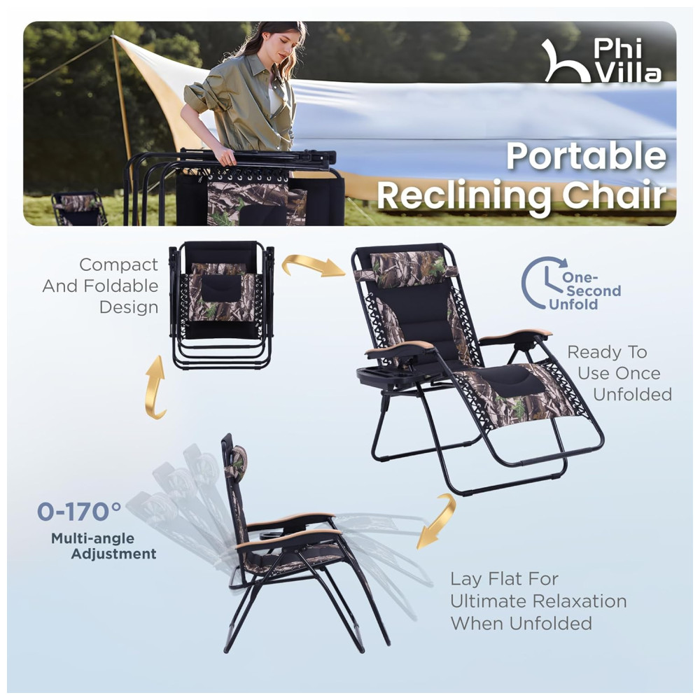 Cadeira Reclinável Ajustável Gravidade Zero com Apoio de Cabeça PHI VILLA Preto
