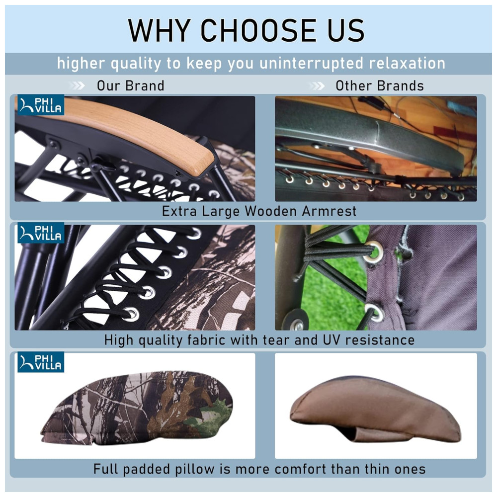 Assento e encosto acolchoado de grandes dimensões O assento acolchoado de grandes dimensões suspenso por sistema de bungee duplo oferece mais conforto e durabilidade. Apoio de braço extra grande com padrão de madeira para maior conforto. A bandeja de xícaras está incluída para conter bebidas ou alimentos