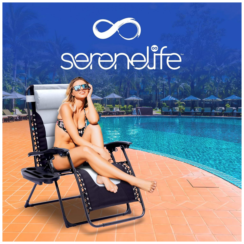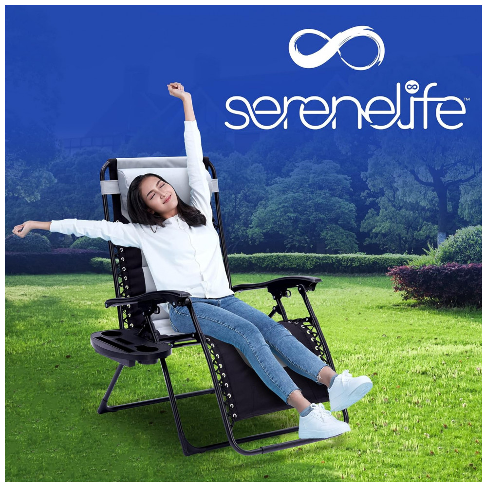 Cadeira Reclinável Ajustável Gravidade Zero com Mesa Lateral Almofada Removível e Porta Copos SereneLife Cinza e Preto