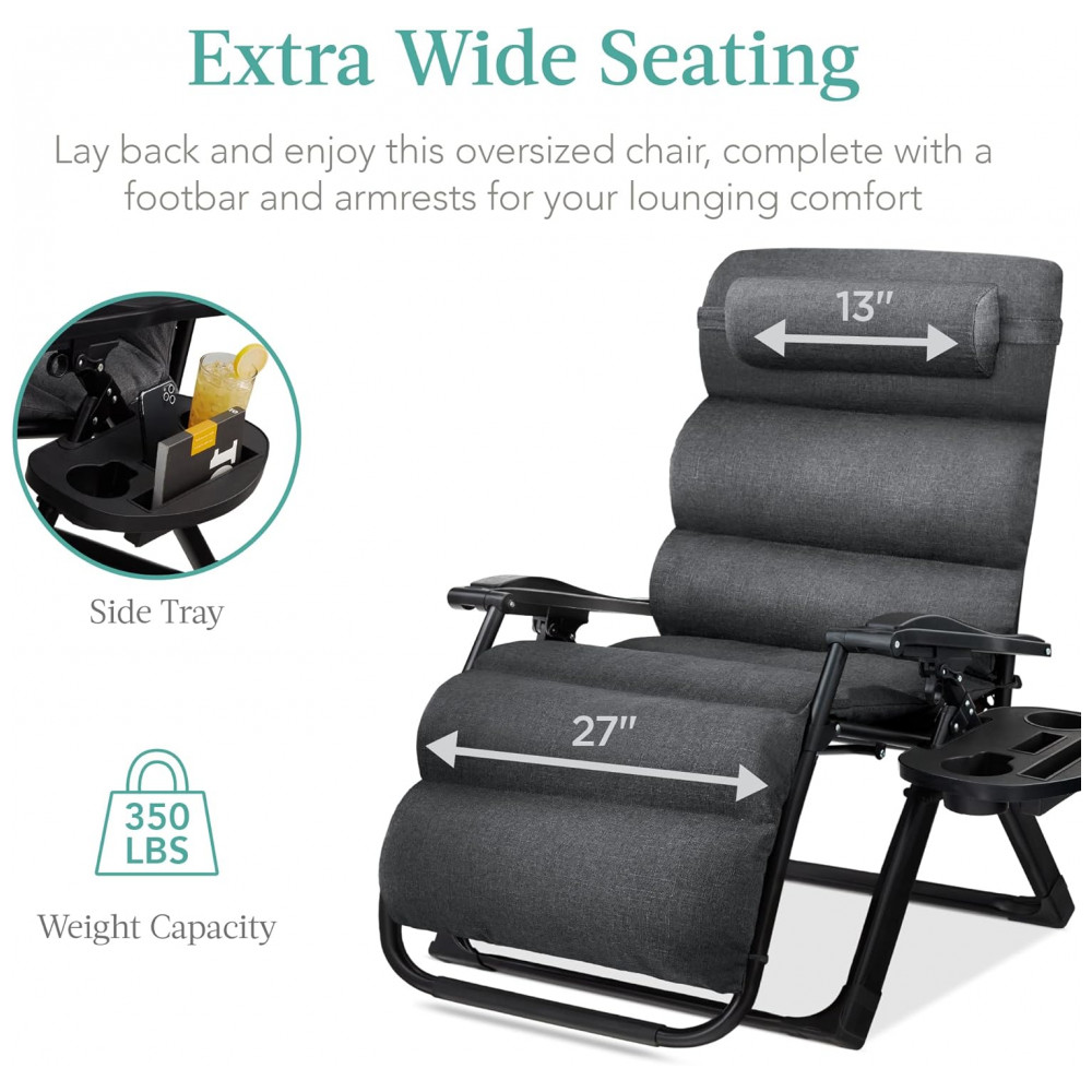 Cadeira Reclinável Ajustável Gravidade Zero com Mesa Lateral e Almofada Removível Best Choice Products Cinza