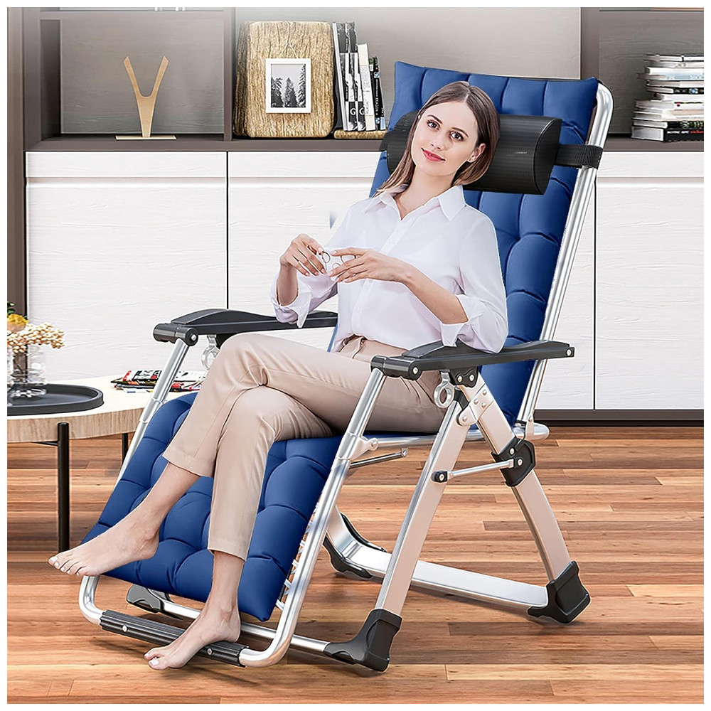 Cadeira Reclinável Ajustável Gravidade Zero com Mesa Lateral e Almofada Removível DoCred Azul