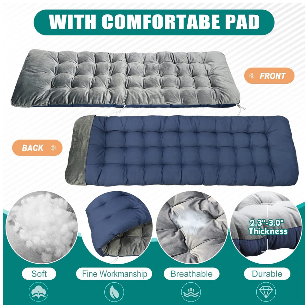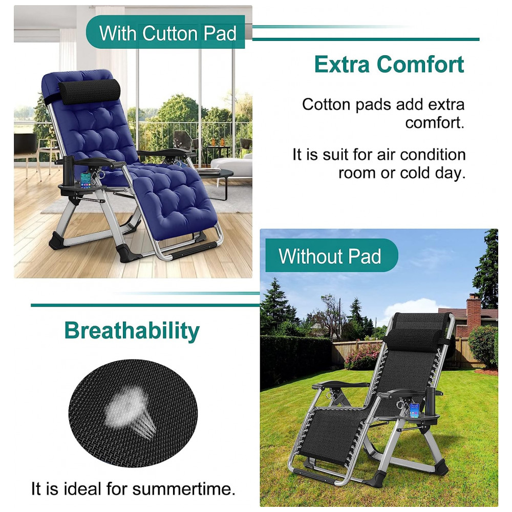 ALMOFADA MACIA REMOVÍVEL A almofada macia adiciona conforto extra. mas também pode ser removido para respirabilidade no verão. Além disso, a espreguiçadeira é muito fácil de instalar e pode ser facilmente dobrada, para facilitar o zenamento e manuseio