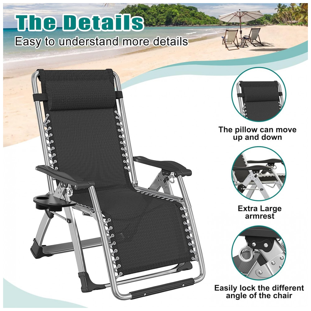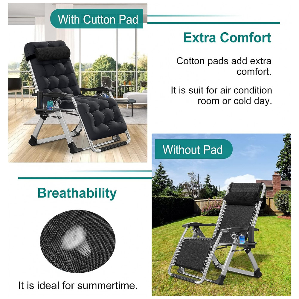 Cadeira Reclinável Ajustável Gravidade Zero com Mesa Lateral e Almofada Removível DoCred Preto