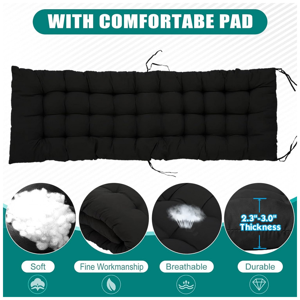 ALMOFADA MACIA REMOVÍVEL A almofada macia adiciona conforto extra. mas também pode ser removido para respirabilidade no verão. Além disso, a espreguiçadeira é muito fácil de instalar e pode ser facilmente dobrada, para facilitar o zenamento e manuseio