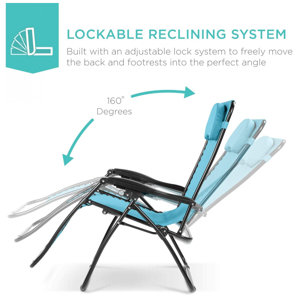 Cadeira Reclinável Ajustável Gravidade Zero com Mesa Lateral e Travesseiro Removível Best Choice Azul