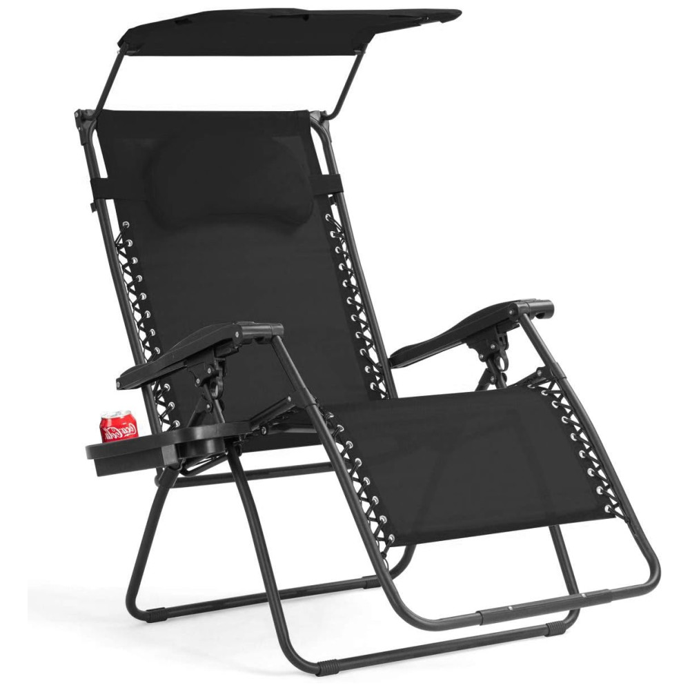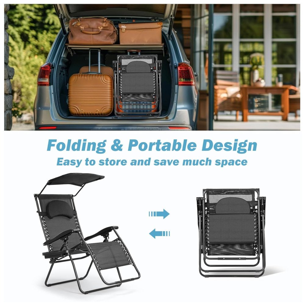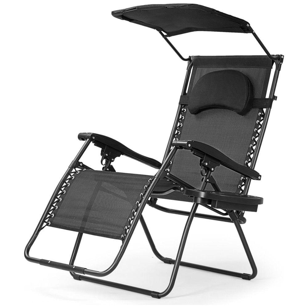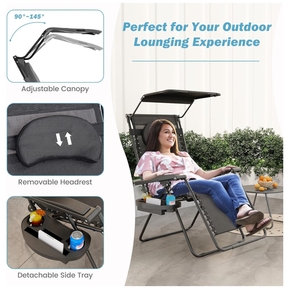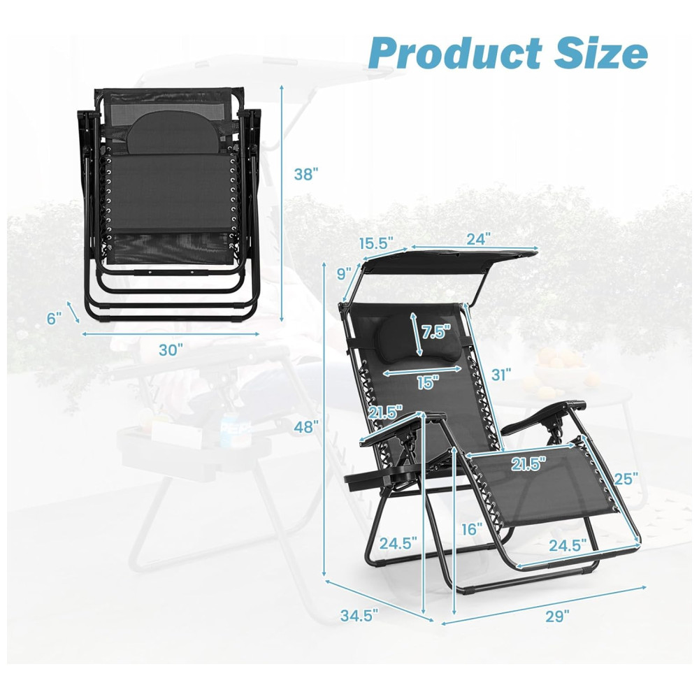 Cadeira Reclinável Ajustável Gravidade Zero com Porta Copos e Cobertura Goplus Azul