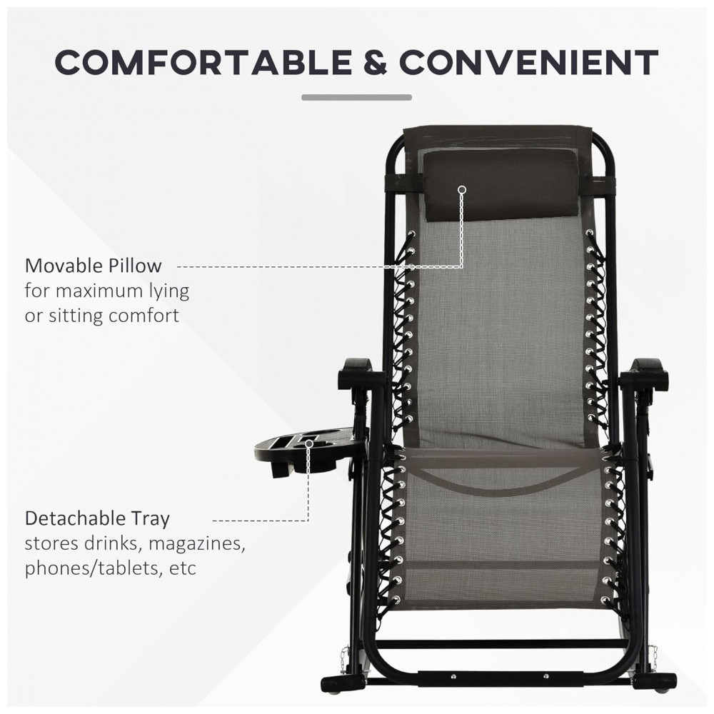 Cadeira Reclinável Ajustável Gravidade Zero com Porta Copos e Travesseiro Outsunny Cinza