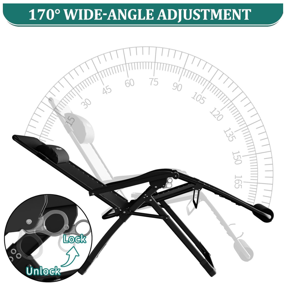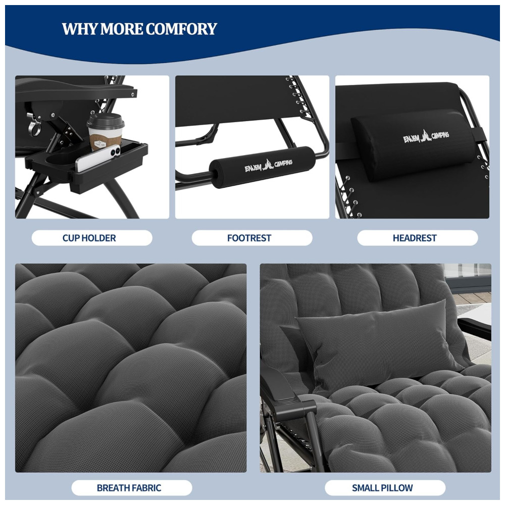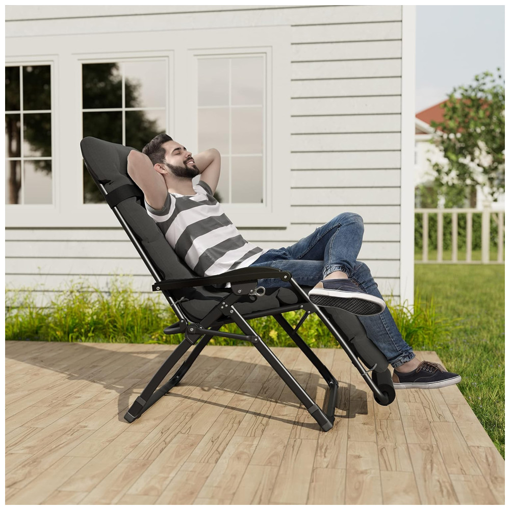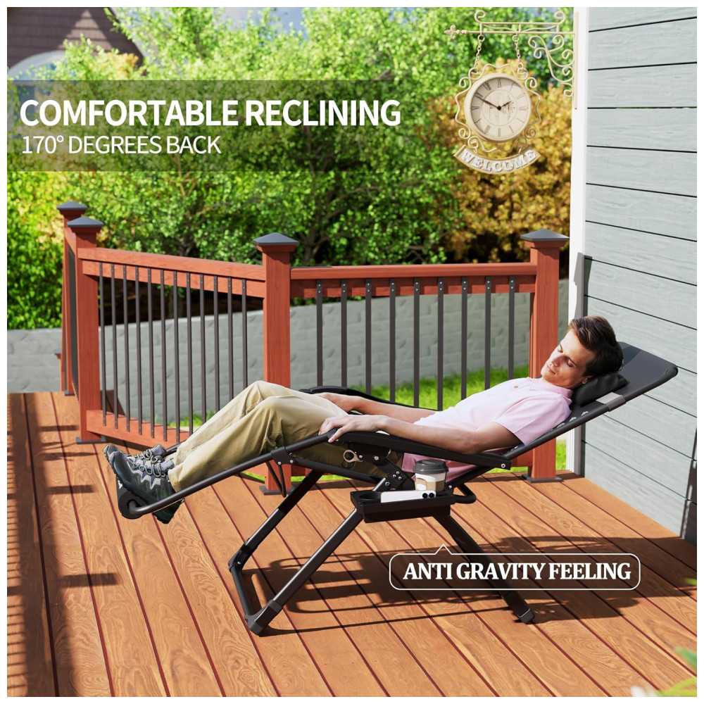Cadeira Reclinável UDPATIO Zero Gravity Oversized 33” XXL com Encosto Ajustável e Mesa Lateral