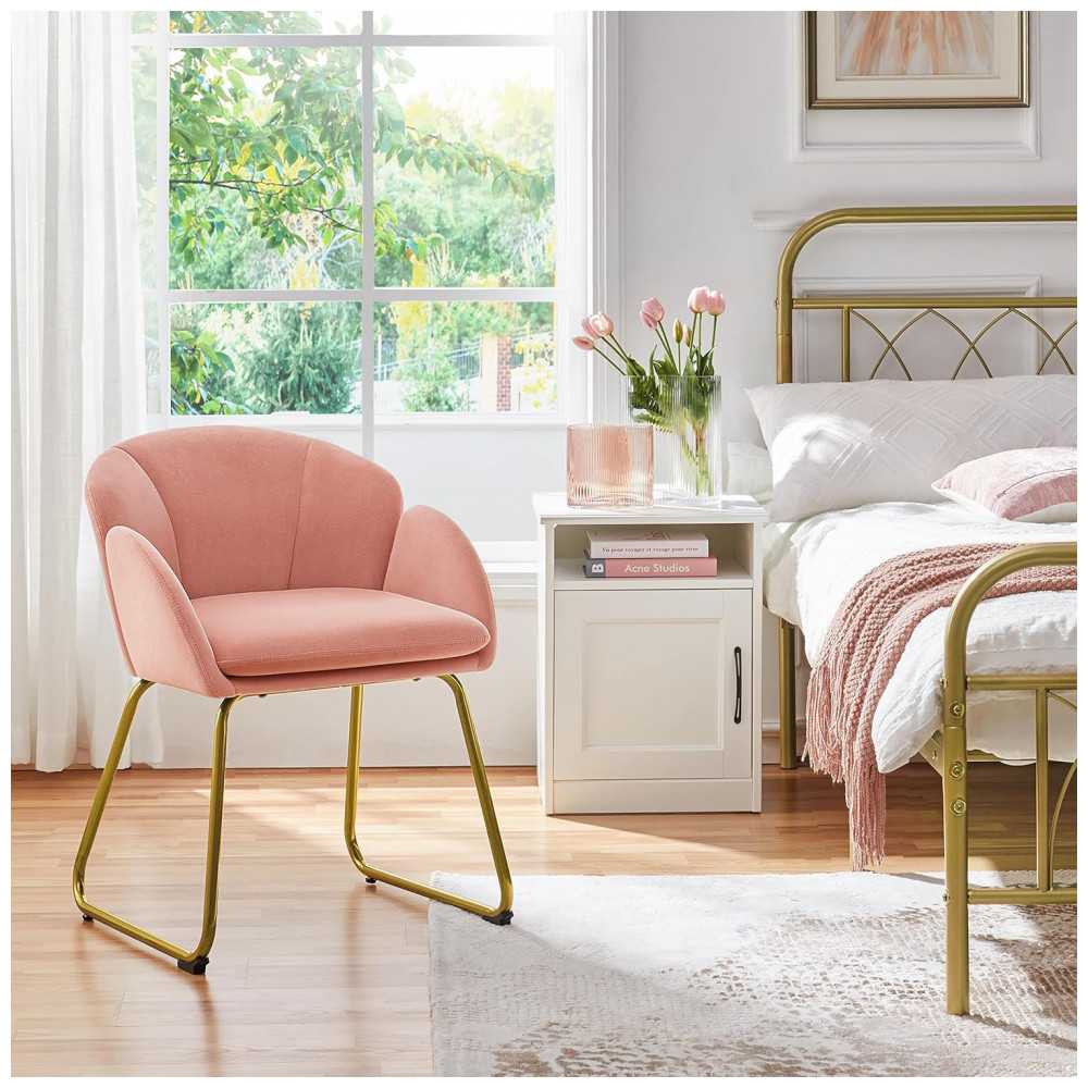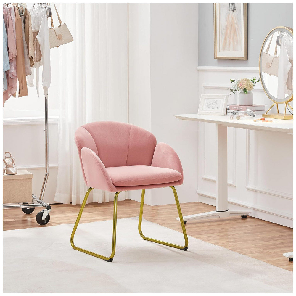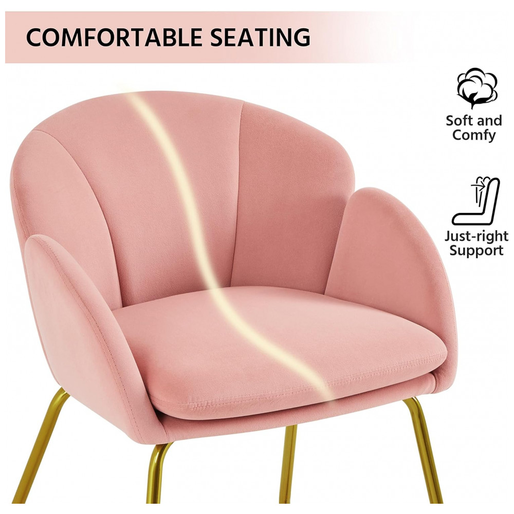 Cadeira Yaheetech em veludo rosa formato flor poltrona para penteadeira com pés metálicos dourados