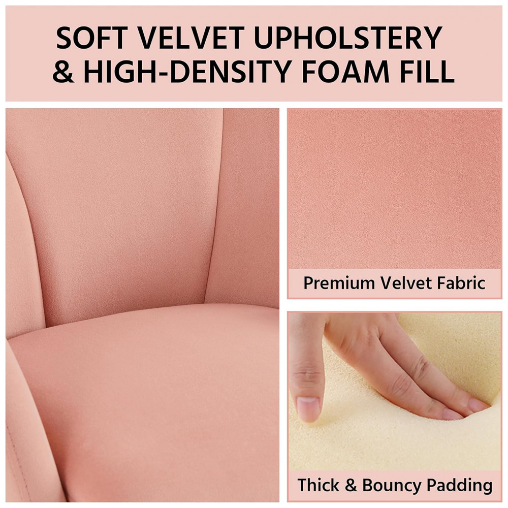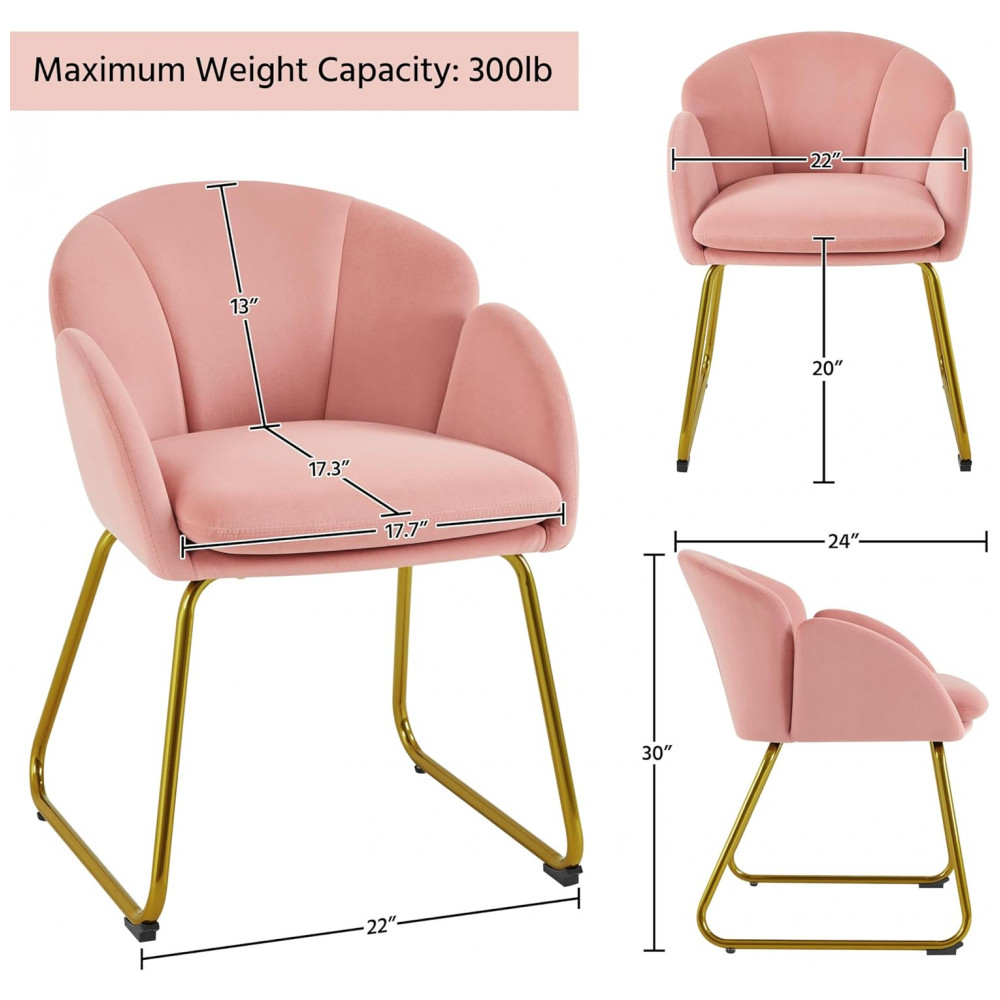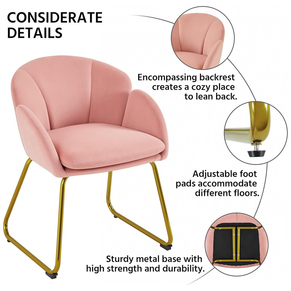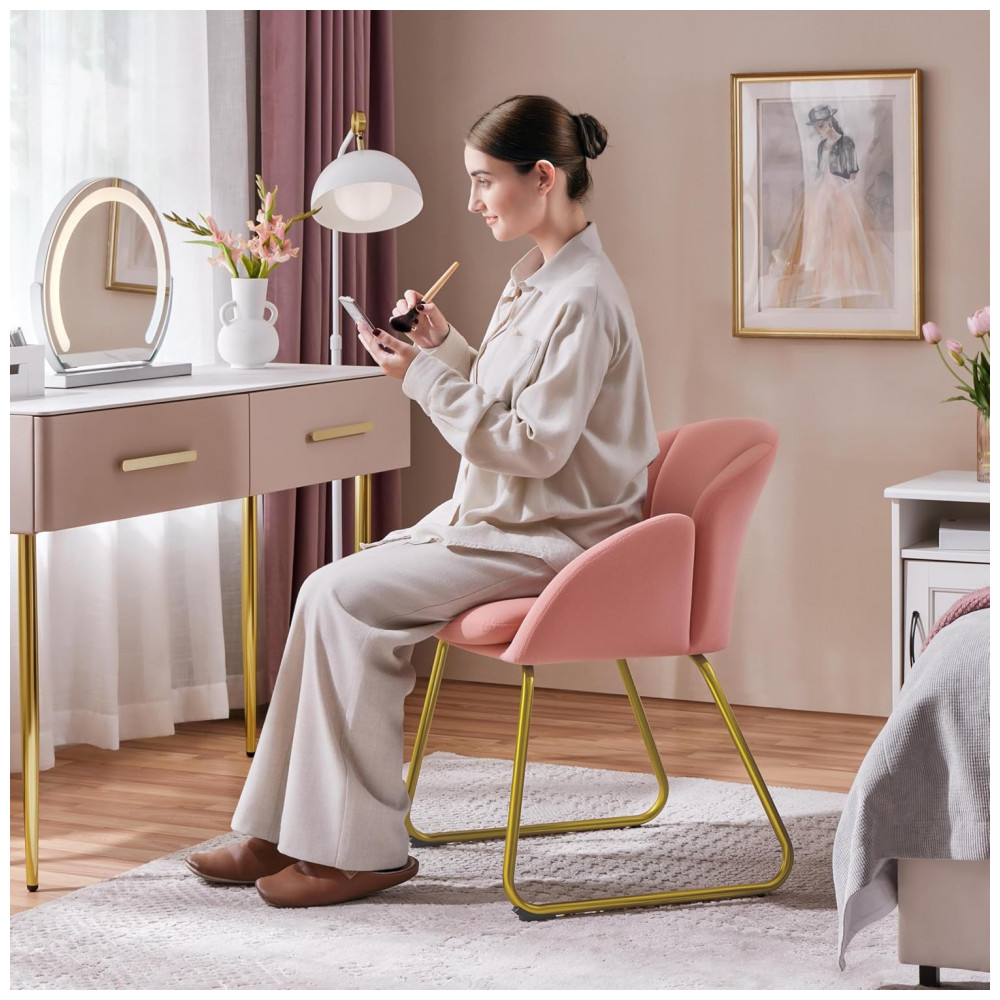 Cadeira Yaheetech em veludo rosa formato flor poltrona para penteadeira com pés metálicos dourados