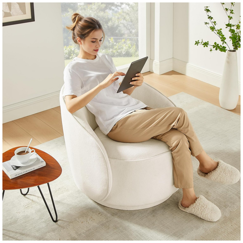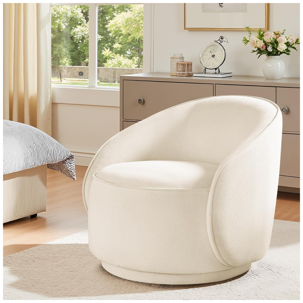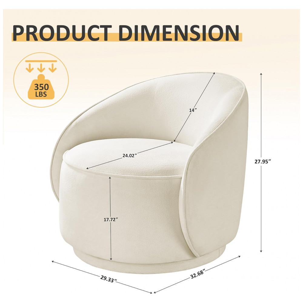 Cadeiras giratórias Arcrinte kit com 2 poltronas tipo barrel em tecido peluciado branco assento giratório 360°