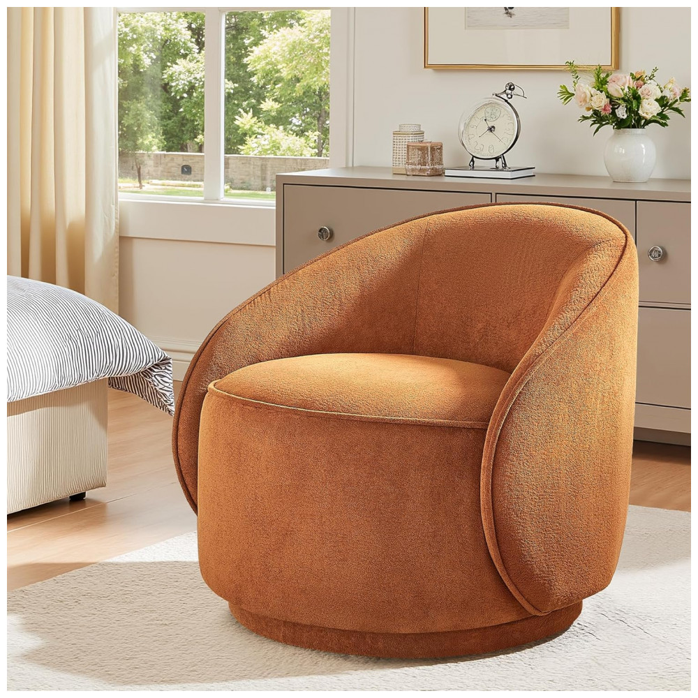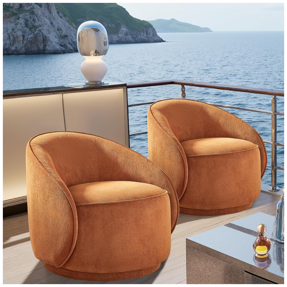 Cadeiras giratórias Arcrinte kit com 2 poltronas tipo barrel em tecido peluciado curry assento giratório 360°