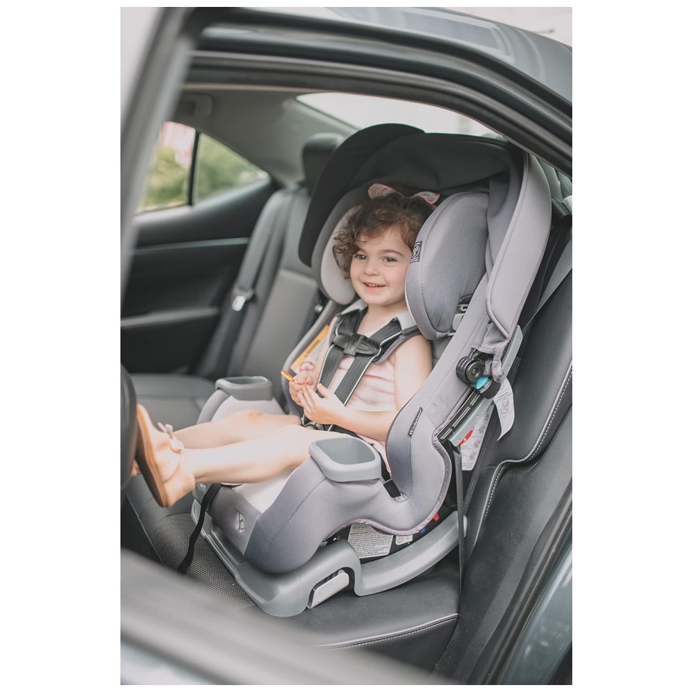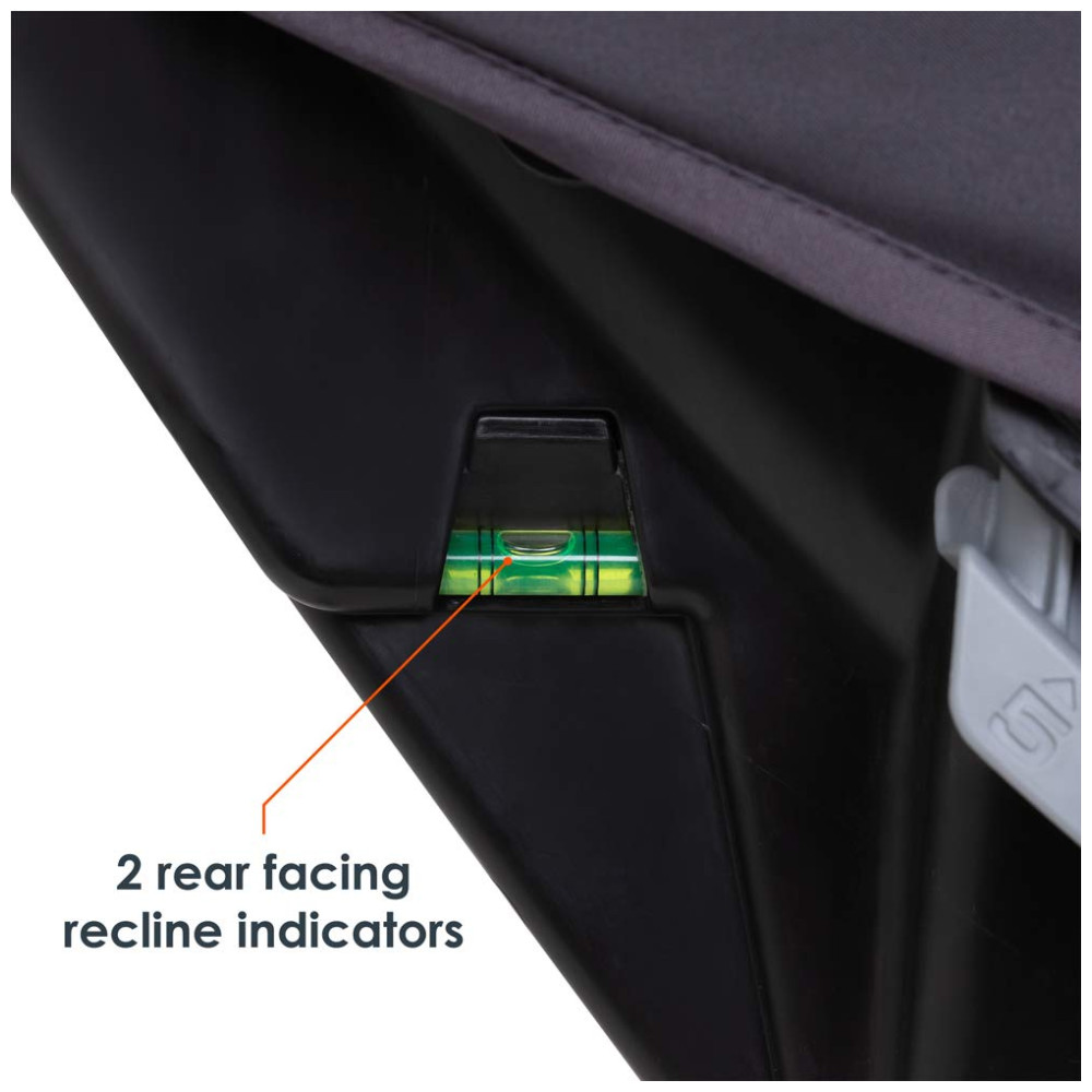 Inclui encosto de cabeça integrado sem arnês recauchutado. Três posições reclináveis que permitem que os passageiros do assento dianteiro tenham espaço extra para as pernas, enquanto um pé reclinável integrado oferece ajuste duplo e dá o ângulo certo com facilidade.