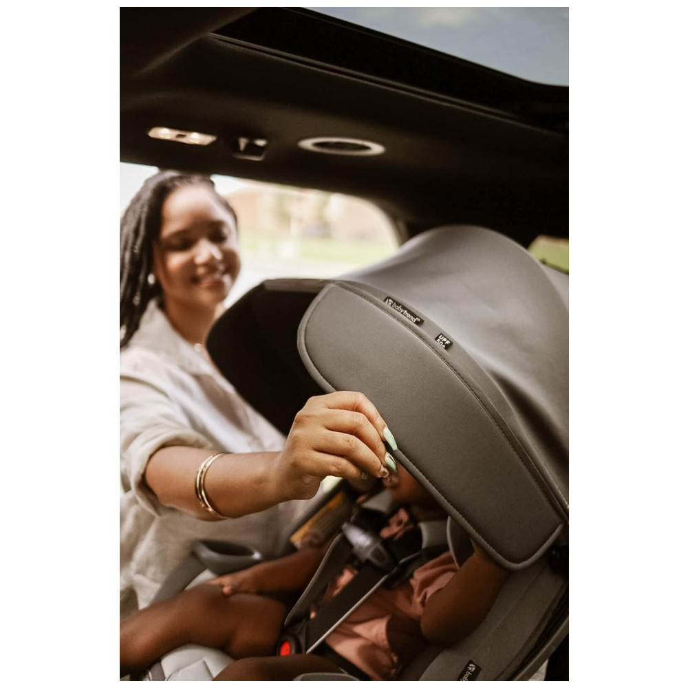 Altura e ângulo integrado para proteção UV no carro. As viseiras laterais retráteis fornecem proteção adicional de sombra para ambos os lados do assento do carro.