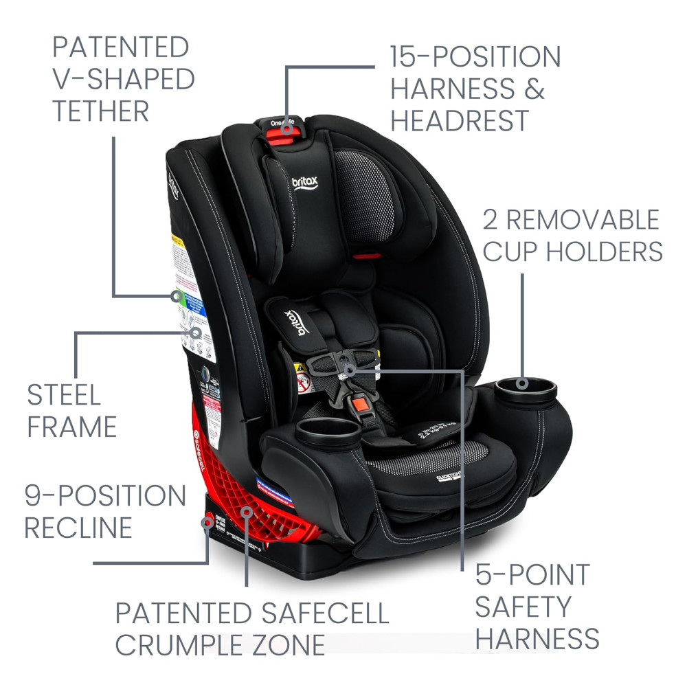Cadeirinha Britax One4Life – Conforto e segurança por até 10 anos de uso, desde 2,3 kg até 54 kg e até 160 cm de altura.