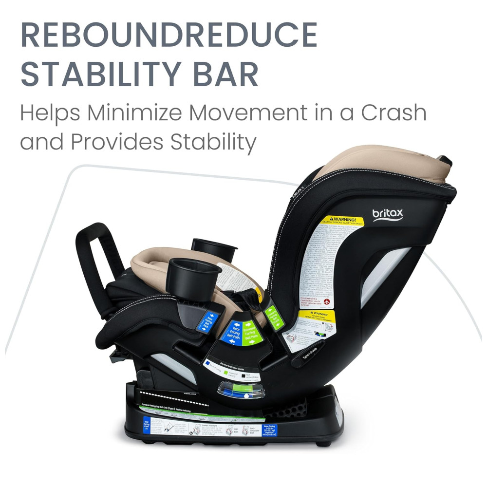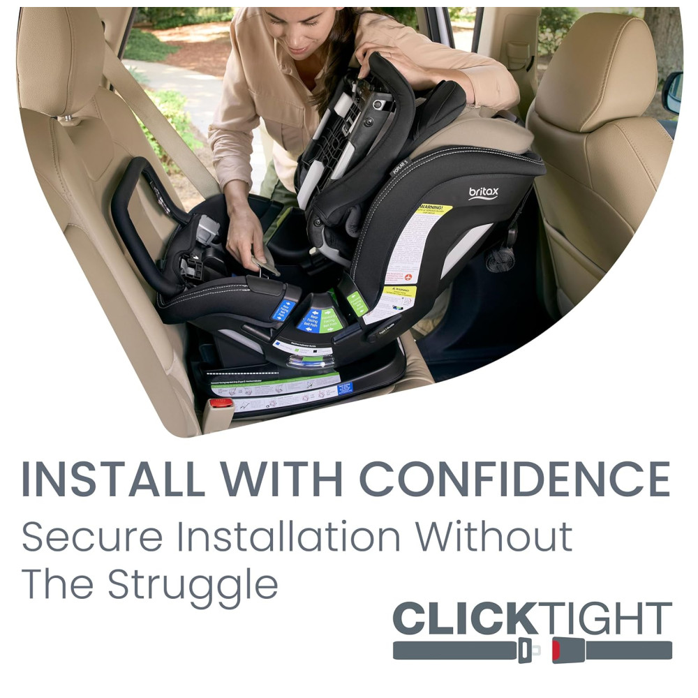 Com a tecnologia ClickTight, a instalação é simples e segura: basta abrir os caminhos do cinto, passar e fechar, sem complicação. A barra de estabilidade ReboundReduce, feita de aço carbono, minimiza o movimento do assento em caso de colisão, sendo removível quando instalada voltada para frente.