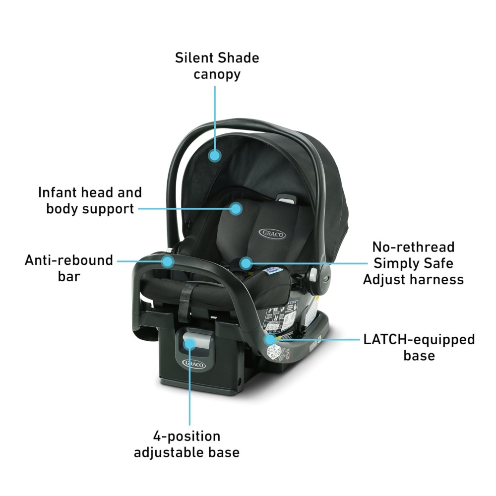 A Cadeirinha Graco SnugRide 35 oferece excelente proteção para bebês de até 15 kg (4-15 kg) e até 81 cm de altura, quando instalada na posição traseira. A Barra Anti-Rebote proporciona uma camada extra de segurança, mantendo o bebê seguro durante o transporte. O Sistema Simply Safe Adjust permite ajustar o apoio de cabeça e o cinto simultaneamente, sem a necessidade de reenfiar o cinto, garantindo conforto e segurança ao seu filho enquanto está no assento.