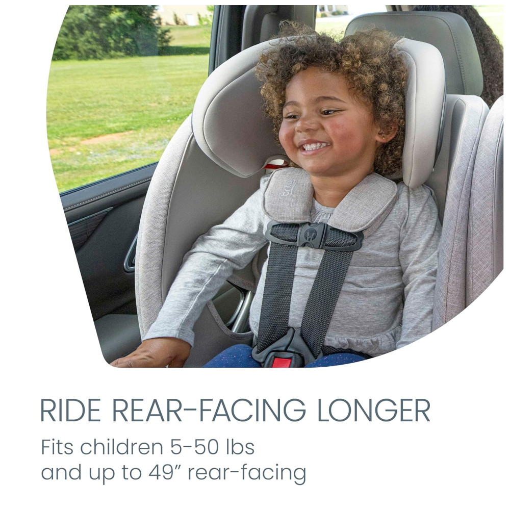A cadeirinha de carro all-in-one One4LifeR Slim acompanha seu filho desde o nascimento até a infância com a segurança confiável da Britax, instalação ClickTightR e design SpaceSaverTM compacto. Como assento conversível e de arnês para booster em um só, ela cresce com seu filho por 10 anos. Começa voltada para trás com capacidade estendida de até 22,6 kg, permitindo que seu filho viaje nessa posição por mais tempo. Facilmente convertida para o modo toddler voltado para frente até 29,5 kg e modo booster de posicionamento de cinto com encosto alto até 54,4 kg quando seu filho estiver pronto. Com um exterior fino e interior espaçoso, o assento de 44,5 cm foi projetado para caber em três fileiras sem comprometer a segurança e o conforto. O ClickTight ajuda você a instalar com confiança, toda vez. A base e a concha são fáceis de limpar para uma limpeza sem complicações. A capa da cadeirinha pode ser lavada e seca à máquina, e é naturalmente retardante de chamas, sem produtos químicos FR adicionados. O One4Life Slim possui uma estrutura de aço de alta resistência, zona de deformação SafeCellR e uma alça em forma de V. Conforme seu filho cresce, você pode ajustar facilmente o arnês de 15 posições sem a necessidade de removê-lo e o apoio de cabeça com uma mão. Com canais de resfriamento, acolchoamento premium, três inserções para recém-nascidos e apoios de braço embutidos, seu filho vai adorar cada viagem. A Britax não pode garantir a compatibilidade de três assentos em todos os veículos. A cadeirinha all-in-one One4LifeR Slim é um assento conversível e de arnês para booster em um só! Ela se converte facilmente de um assento voltado para trás para bebês e crianças de 2,3 kg a um assento voltado para frente de 13,6 a 29,5 kg e um assento de reforço com encosto alto de 18,1 a 54,4 kg. Instalação ClickTightR Instale com confiança em 3 etapas simples: aperte para abrir, passe a correia e feche! Design SpaceSaverTM Exterior fino, interior espaçoso! O assento de 44,5 cm foi projetado para caber em três fileiras sem comprometer a segurança confiável da Britax e o conforto premium. Recursos adicionais incluem cobertura de assento premium, segurança confiável da Britax, assento confortável, ajustes fáceis, portacopos deslizante, caminhos de cintos coloridos e fácil limpeza.