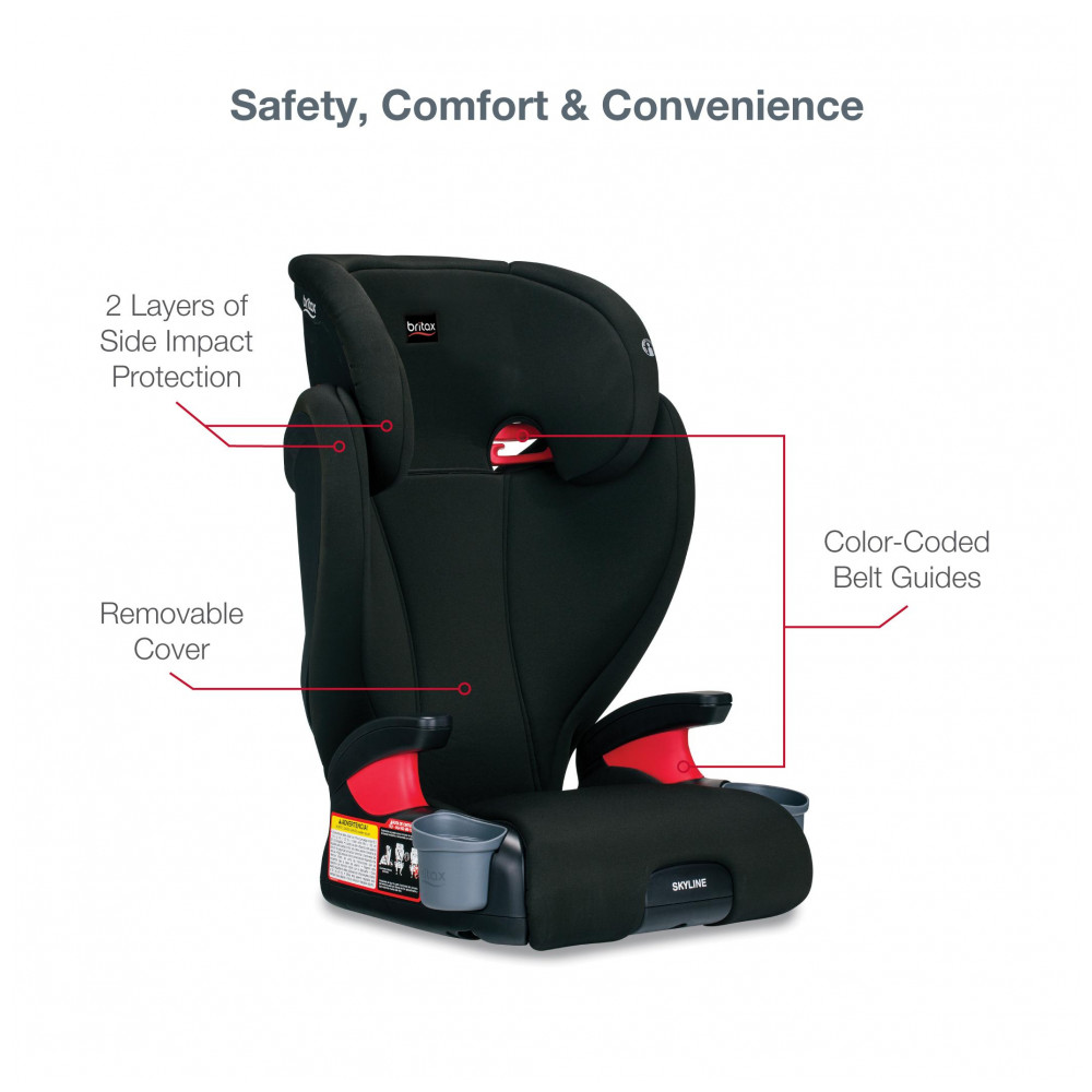 A cadeirinha de carro Britax Skyline 2Stage BeltPositioning Booster combina segurança superior com design elegante. Ela se converte facilmente de um assento elevado com encosto para um assento elevado sem encosto, permitindo que seu filho ande de forma mais segura por mais tempo. O encosto de cabeça de 10 posições ajustáveis cresce com a criança até 160 centímetros. Possui 2 porta-copos que podem ser lavados na lava-louças, mantendo as bebidas e lanches sempre por perto. Com acolchoamento de espuma macia e apoios de braço embutidos, seu filho maior vai desfrutar do passeio. A cadeirinha possui concha protetora e encosto de cabeça revestido de espuma para absorver a energia de impactos e manter a cabeça, pescoço e corpo da criança seguros. As guias de cinto coloridas facilitam a correta posição do cinto de segurança do veículo. Além disso, conta com 2 porta-copos removíveis que podem ser lavados na lava-louças, garantindo que bebidas, lanches e brinquedos estejam ao alcance e sejam fáceis de limpar após cada passeio. A cadeirinha se encaixa em crianças com peso entre 18 e 54 kg e 112 cm de altura no modo com encosto, até 160 cm de altura. Converte facilmente para um assento elevado sem encosto para manter seu filho maior mais seguro por mais tempo. Com 2 camadas de gerenciamento de energia, a concha protetora e o encosto de cabeça revestido de espuma ajudam a absorver a energia de impactos e a manter a cabeça, pescoço e corpo da criança seguros. O encosto de cabeça de 10 posições ajustáveis cria um ajuste confortável e seguro à medida que a criança cresce. Os conectores inferiores de liberação rápida premium garantem a fixação da cadeirinha no veículo quando não está em uso, protegendo outros passageiros. As guias de cinto coloridas do veículo tornam mais fácil do que nunca posicionar corretamente o cinto de segurança do veículo. Os tecidos de malha macios, respiráveis e estilosos são aprovados pelo público infantil. A capa removível facilita a limpeza sem complicações.