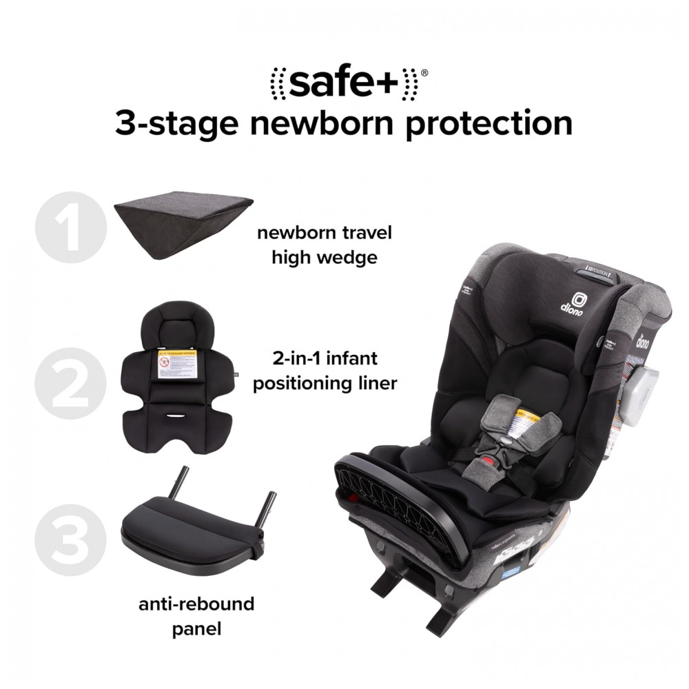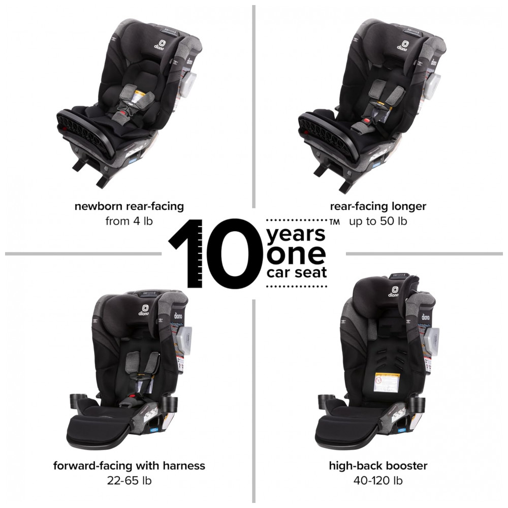 Cadeirinha de Carro Conversível Diono Radian 3RXT SafePlus Max Segura e Versátil 10 Anos 1 Cadeirinha Design Estreito para 3 Cadeiras Preto