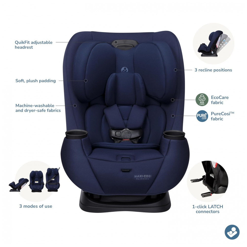 Mantenha seu pequeno confortável e seguro desde a primeira viagem para casa com a Cadeirinha de Carro Conversível Pria All-in-One. Projetada para acompanhar sua família em crescimento: assento de carro de costas 2,7 a 18kg, 48-102cm, assento de carro virado para frente 13,6 a 29,5kg, 87,4 a 124,5cm, e booster 18,1 a 45,4kg, 110,2 a 132cm. A Pria é feita para o conforto do seu filho, incluindo conveniências para você. Levante o encosto de cabeça e sistema de arnês integrados QuikFit com uma mão para ajustar corretamente seu filho à medida que cresce rapidamente. ReclineFit oferece 3 posições reclináveis para uma viagem relaxante, além de facilitar o encaixe no seu carro. O travesseiro e almofadas infantis proporcionam suporte extra e podem ser facilmente removidos sem precisar reenfiar o arnês. Os tecidos premium são eco-friendly, feitos de garrafas plásticas recicladas, macios, confortáveis e respiráveis – perfeitos para seu pequeno. Todos os tecidos são laváveis à máquina. Esta cadeirinha está pronta para acompanhar você e seu filho nos próximos anos, criando memórias juntos. Projetada e testada para atender ou exceder os padrões de segurança federais. Encaixe real pode variar.