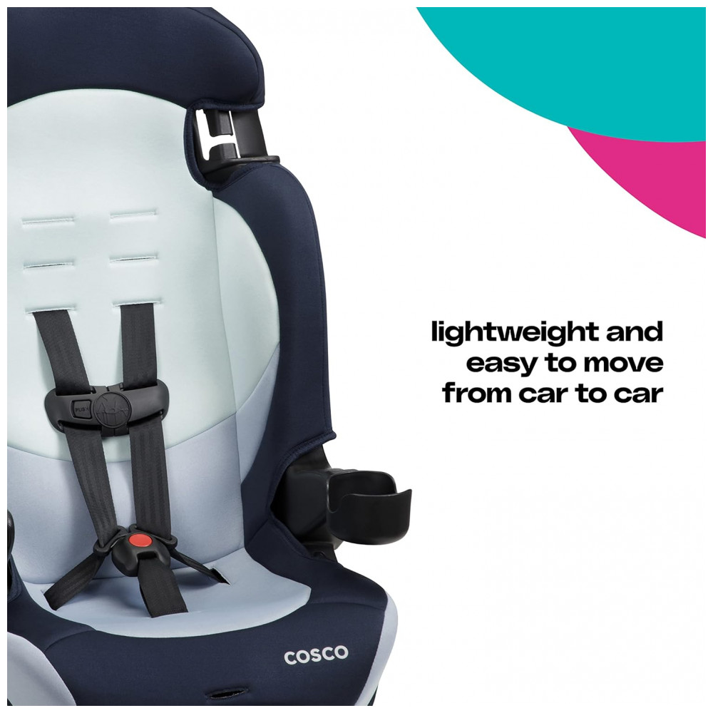 A Cadeirinha de Carro Cosco Kids Finale DX 2 em 1 Booster pode ser a última cadeirinha de carro que você vai precisar! Este versátil booster para crianças apresenta dois modos: assento de carro voltado para a frente com um reforço de arnês para crianças de 13,6kg a 29,5kg e 81cm a 124cm, e um assento elevatório com posicionamento de cinto para crianças de 18,1kg a 45,4kg e 109cm a 132cm. Leve e ótimo para viagens, este booster é fácil de transferir de carro para carro, perfeito para famílias sempre em movimento. Projetado para caber em 3 lugares no banco traseiro da maioria dos veículos, é uma solução compacta para famílias com várias crianças em boosters ou famílias que fazem caronas. O assento removível é lavável à máquina e pode ir à secadora. Recursos adicionais incluem porta-copos removíveis e seguros para lava-louças. Esta cadeirinha atende ou excede os padrões de segurança federais.