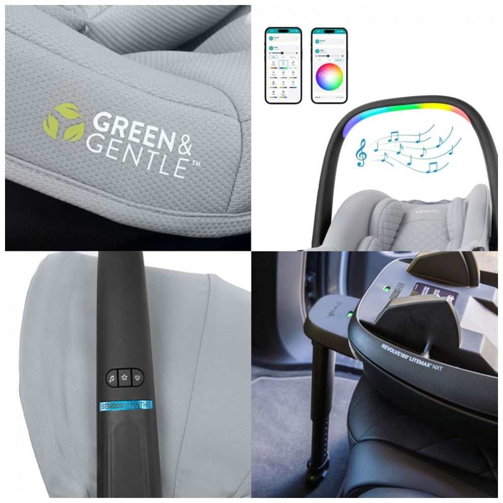 A Cadeirinha de Carro para Bebê Evenflo Revolve180 LiteMax NXT com tecnologia SensorySoothe tem tudo o que você precisa. Para bebês de até 15.732 polegadas e 30 libras, essa cadeirinha oferece rotação de 180 graus com uma mão, facilitando a entrada e saída. A tecnologia SensorySoothe acalma o bebê com luzes, música e sons integrados na alça da cadeirinha. Desfrute de um show de luzes envolvente através do aplicativo Evenflo em seu celular! A tecnologia SensorSafe adiciona uma camada de proteção para tranquilidade, alertando sobre 4 condições potencialmente inseguras. O sistema de tensionamento da correia LockStrong garante uma instalação sólida e segura em pouco tempo, enquanto a tecnologia SecureTight ajuda a obter uma instalação mais firme com até 50% menos esforço. O tecido verde gentil sustentável é livre de produtos químicos e retardantes de chama, feito de garrafas plásticas recicladas. A perna de carga ajustável SafeZone com indicadores fáceis de ler estabiliza a base da cadeirinha, reduzindo as forças de impacto. A Revolve180 LiteMax NXT atende ou excede todos os padrões de segurança federais aplicáveis, além de ser testada quanto à integridade estrutural, capotamento e temperatura. Simplifique a entrada e saída do seu bebê, acalme-o com tecnologia avançada, controle a estabilidade, instale com facilidade e adicione camadas de proteção. A segurança é prioridade para a Evenflo!