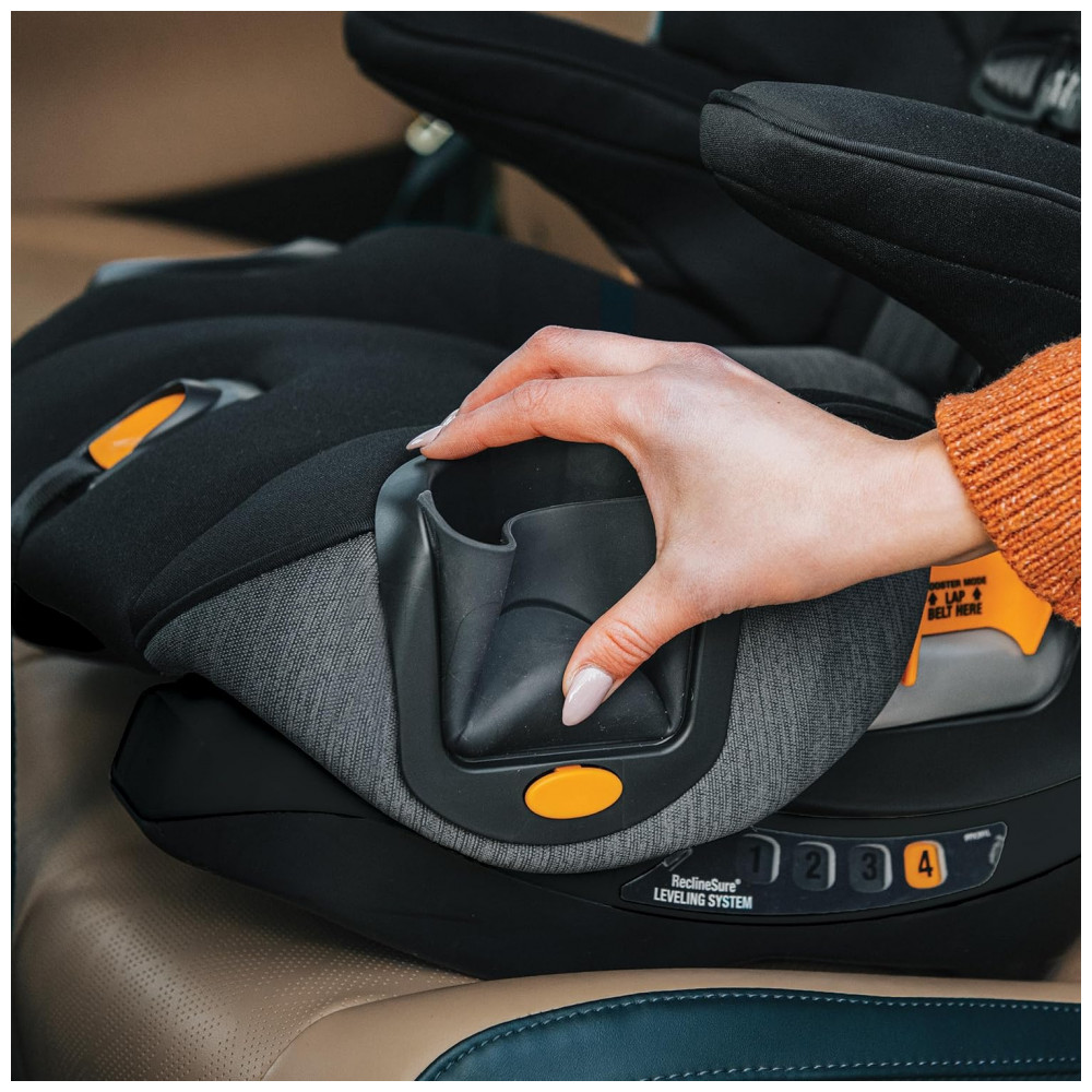 O sistema de instalação aceita tanto o uso do sistema de ancoragem LATCH quanto a fixação por cinto de segurança, auxiliado por guias de passagem e travas de tensionamento que facilitam o ajuste fino. Indicadores de nível e sistema de reclinação em múltiplas posições ajudam a obter o ângulo adequado do assento em diferentes modelos de veículo. A base compacta permite que até três cadeirinhas sejam instaladas lado a lado em bancos traseiros com largura compatível.