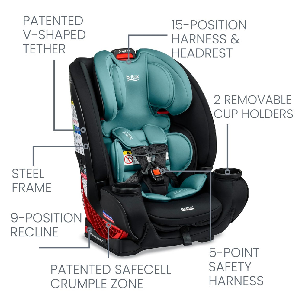 Cadeirinha para Carro Conversível Britax One4Life 10 Anos de Uso de 23 a 544 Quilos Tecido Lavável à Máquina Jade Ônix