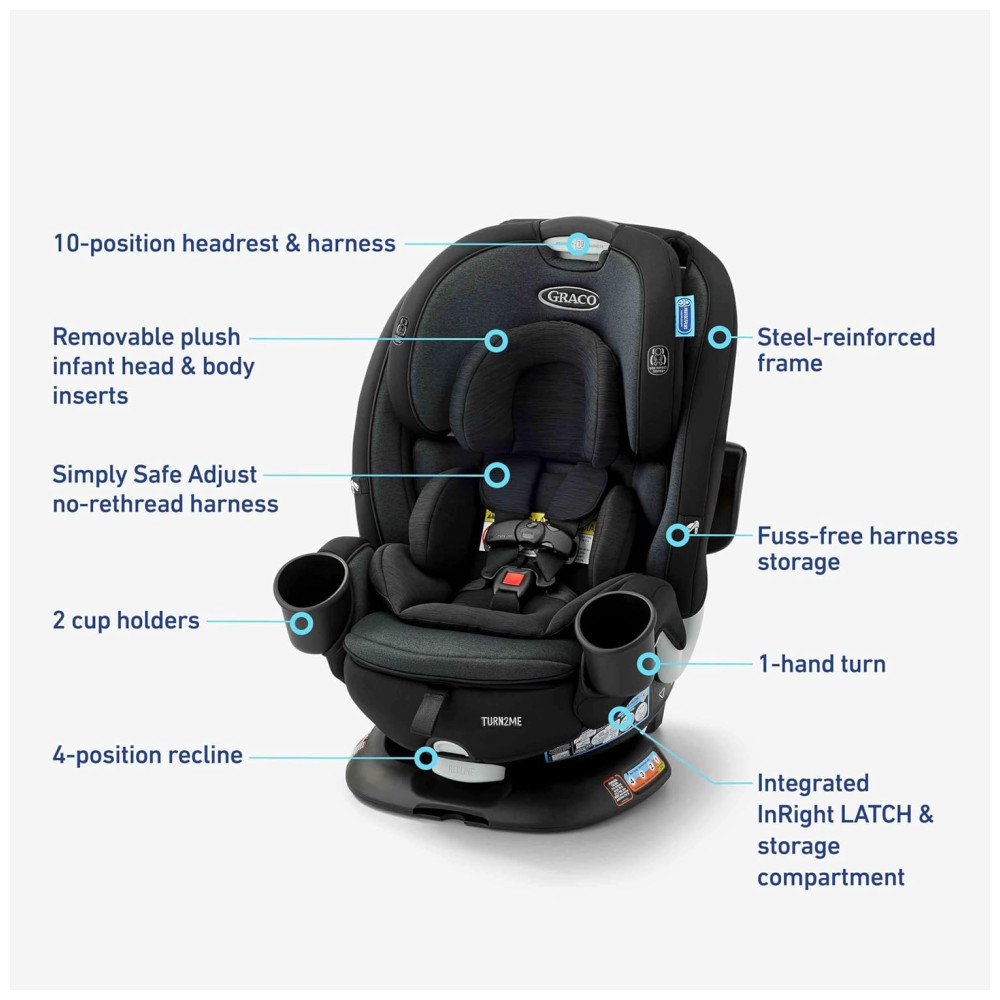 Cadeirinha para Carro Conversível Graco Turn2Me 3 em 1 Cambridge – Rotação com um Toque Proteção Avançada e Conforto Ajustável
