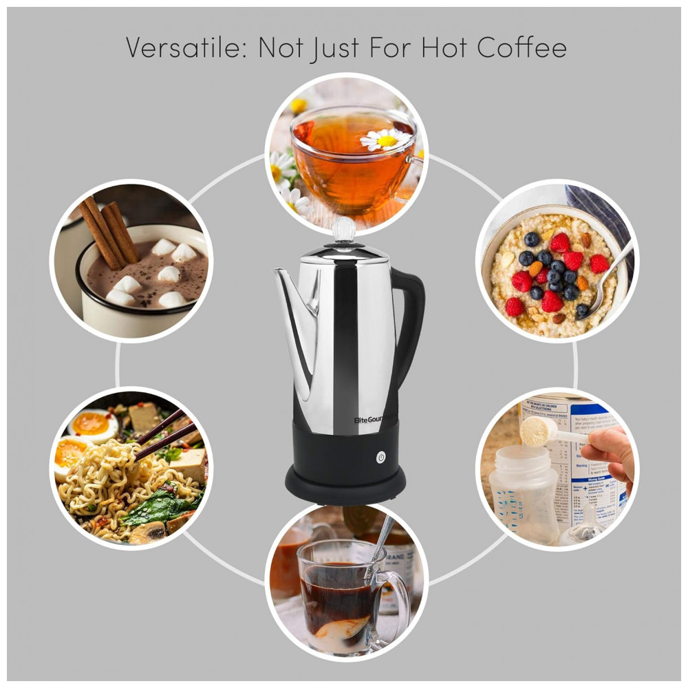 VERSATILIDADE NO USO Prepare instantaneamente café quente em menos de 5 minutos. Aqueça até 12 xícaras de água para chá, chocolate quente, aveia ou cereais quentes.