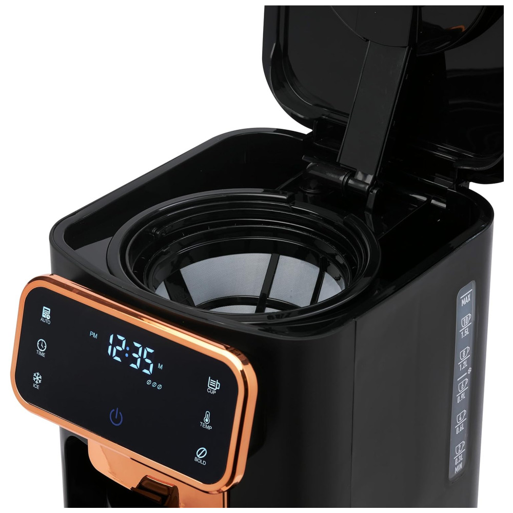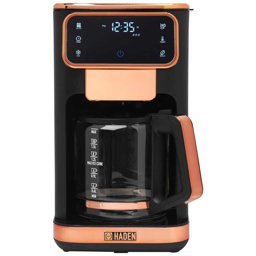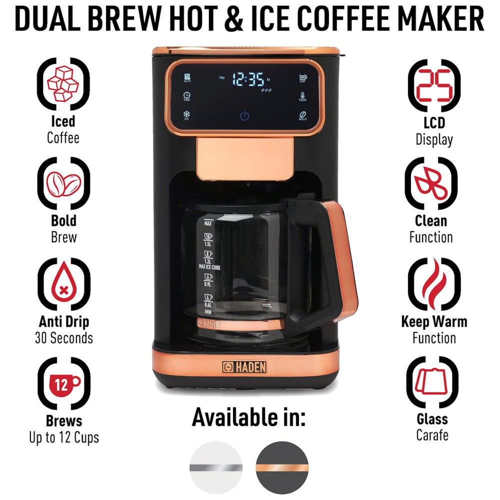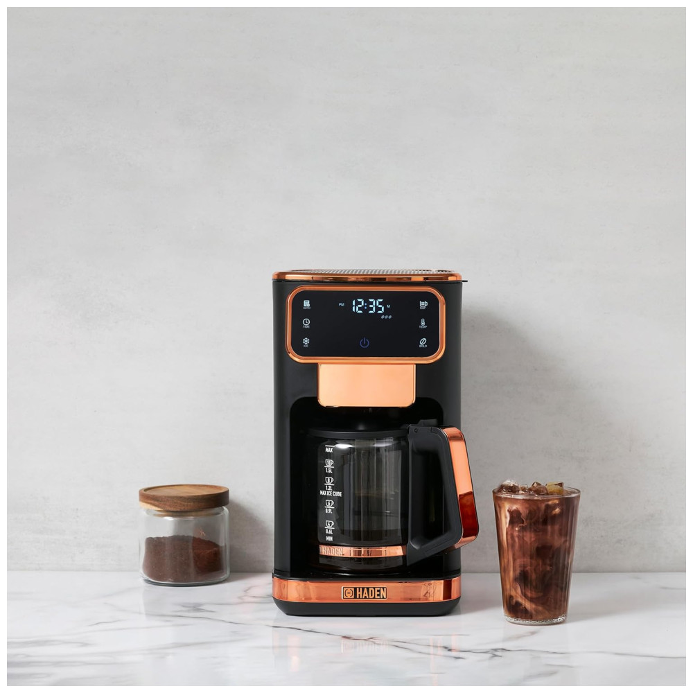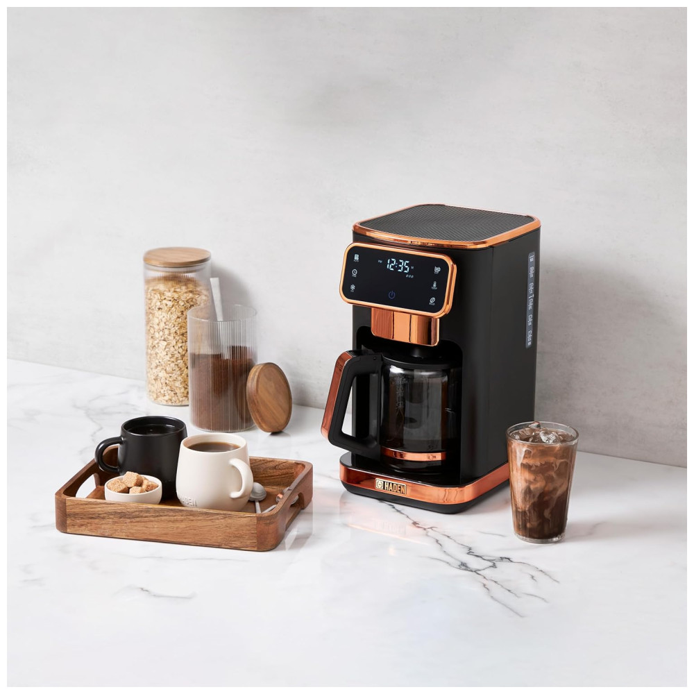 Cafeteira 12 Xícaras para Café Quente ou Gelado com Relógio Programável 110V 1100W Haden Dual Brew Preto e Cobre
