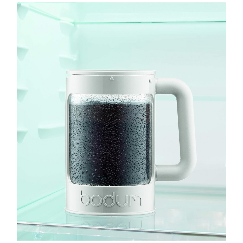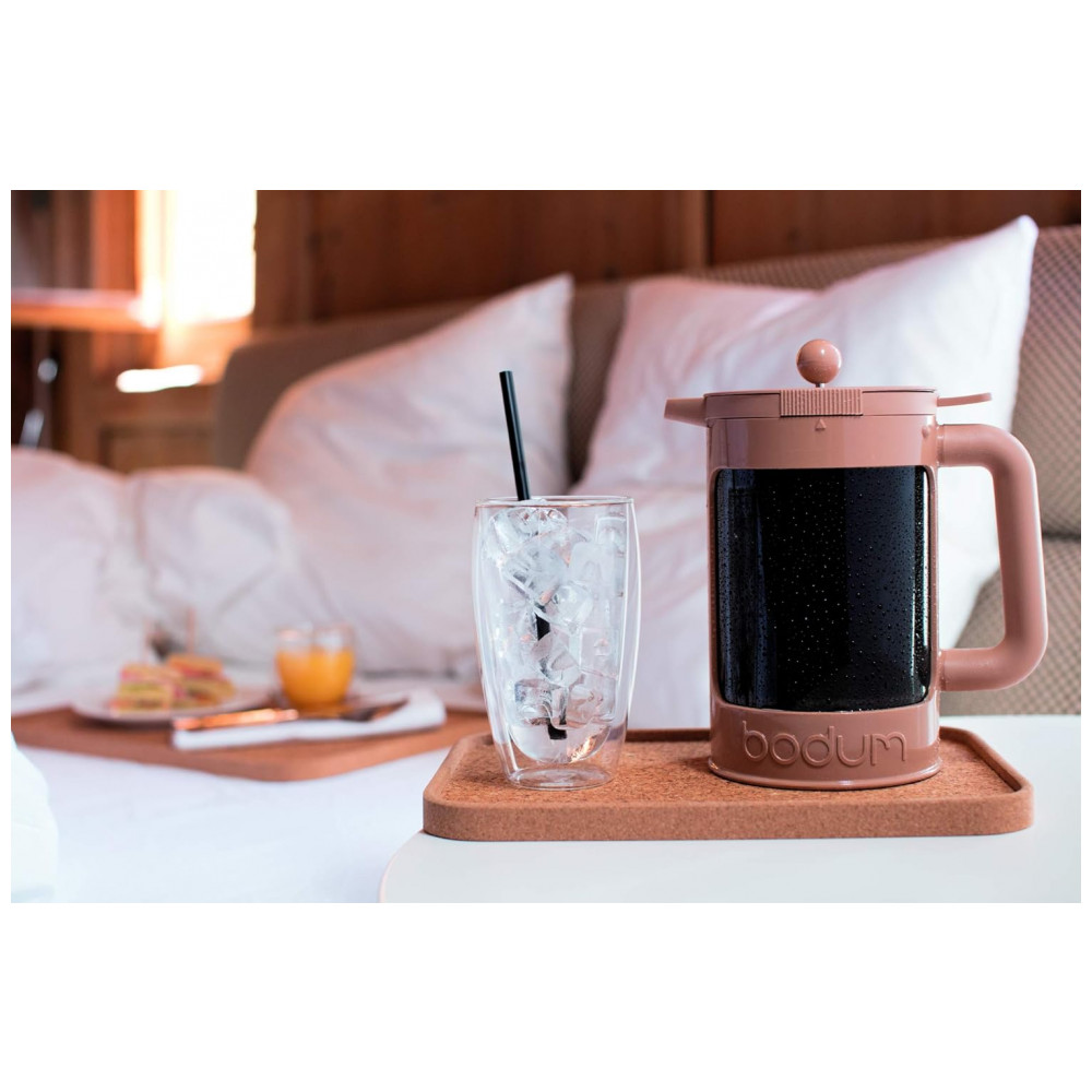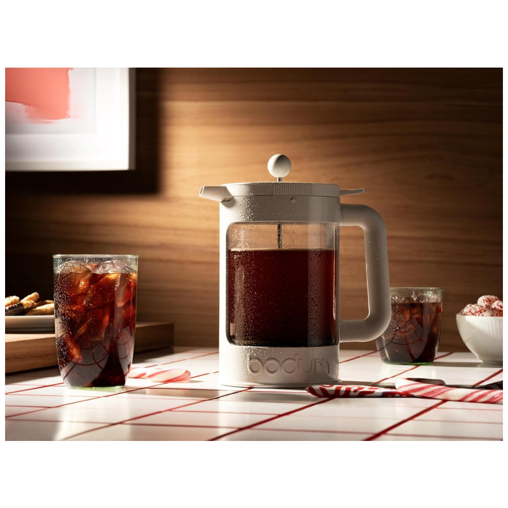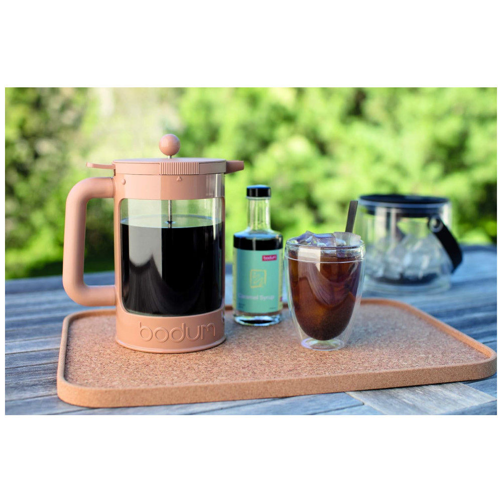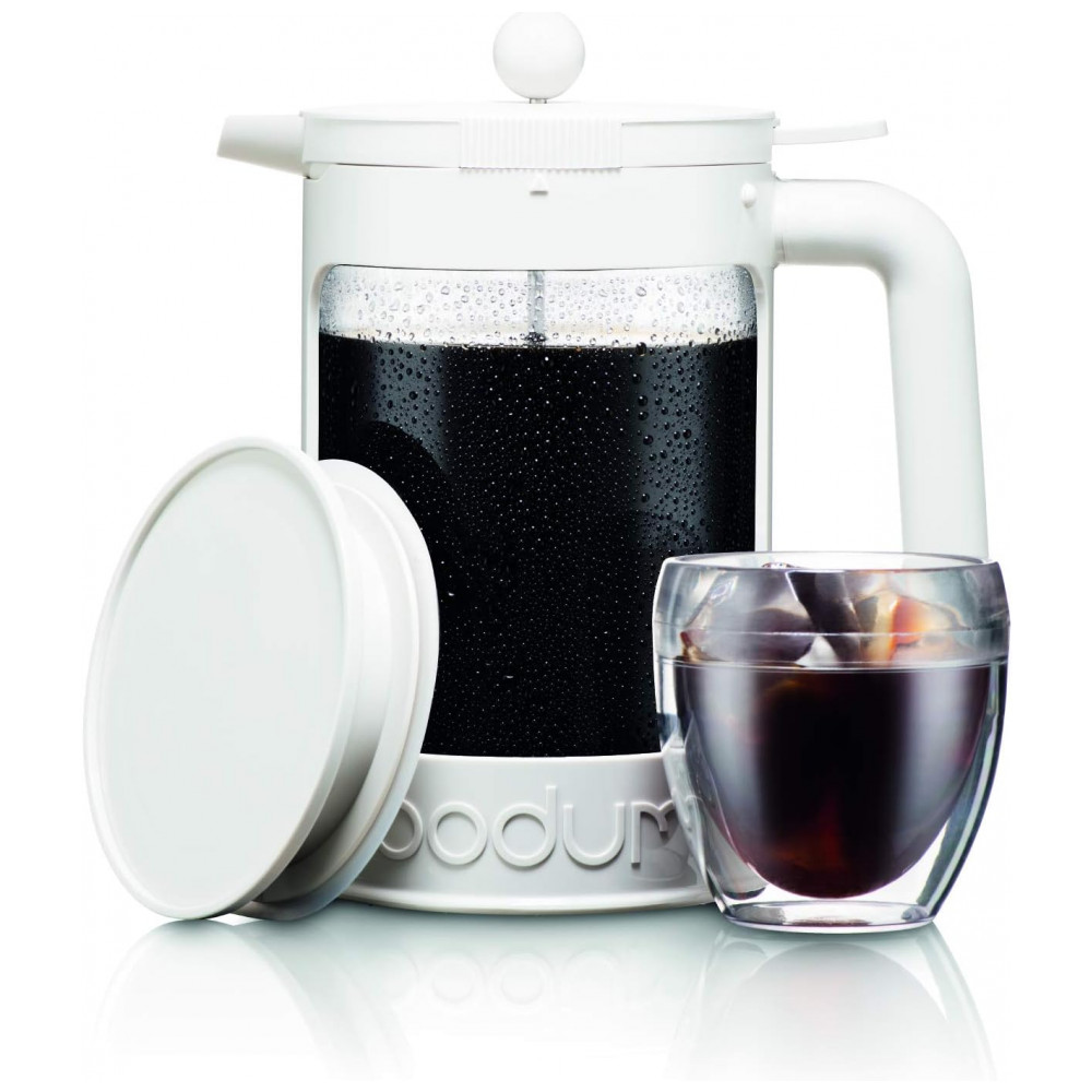 Inclui duas tampas uma para a geladeira durante a noite e outra com êmbolo para pressionar a borra do café pela manhã.