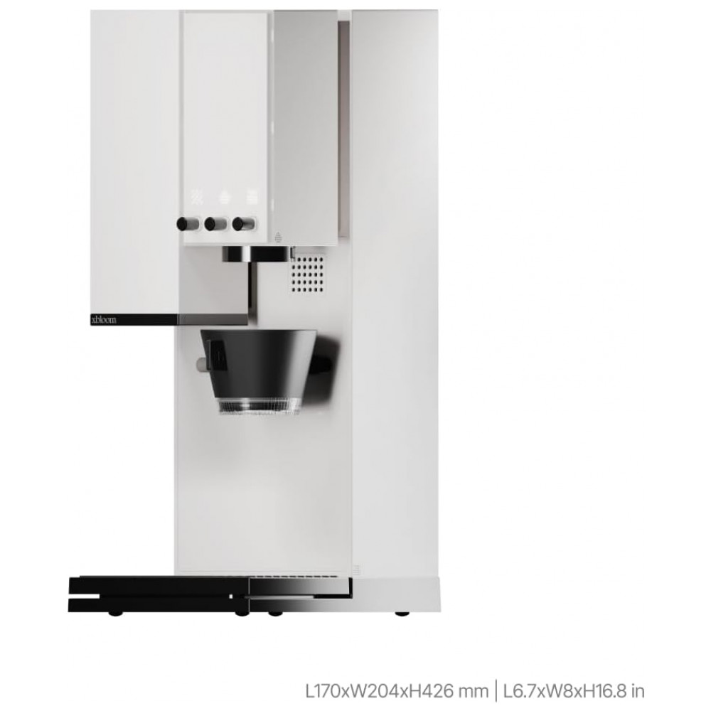 A xBloom Studio é uma cafeteira automática pour over com moedor integrado e balança de precisão, desenvolvida para preparo de café filtrado com alto nível de consistência e personalização em ambiente doméstico ou escritório. O reservatório de água de 0,95L atende desde doses individuais até múltiplas xícaras, com preparo programável e operação semiautomática focada em extração por filtro de papel.