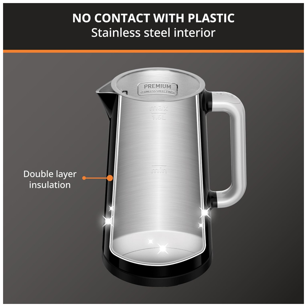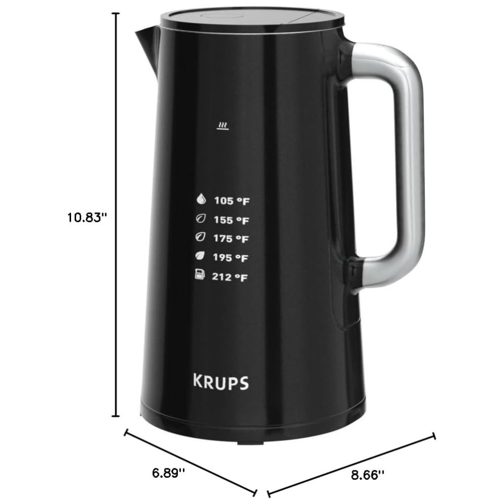 Cafeteira Chaleira Elétrica Sem Fio 7 Xícaras 17 Litros Interior Inoxidável Cor KRUPS BW801852 Preto