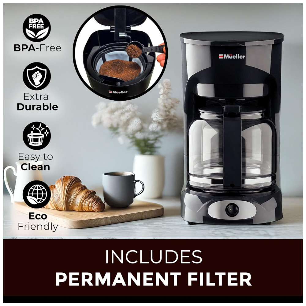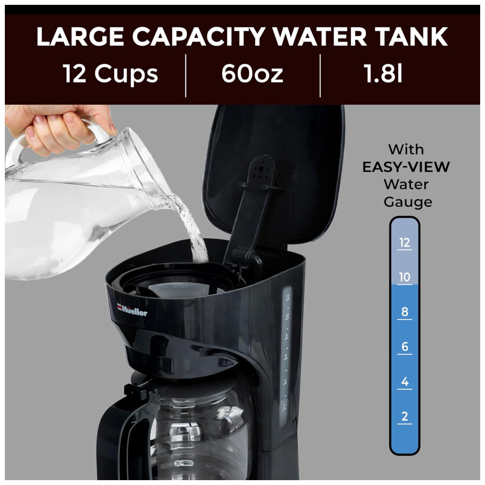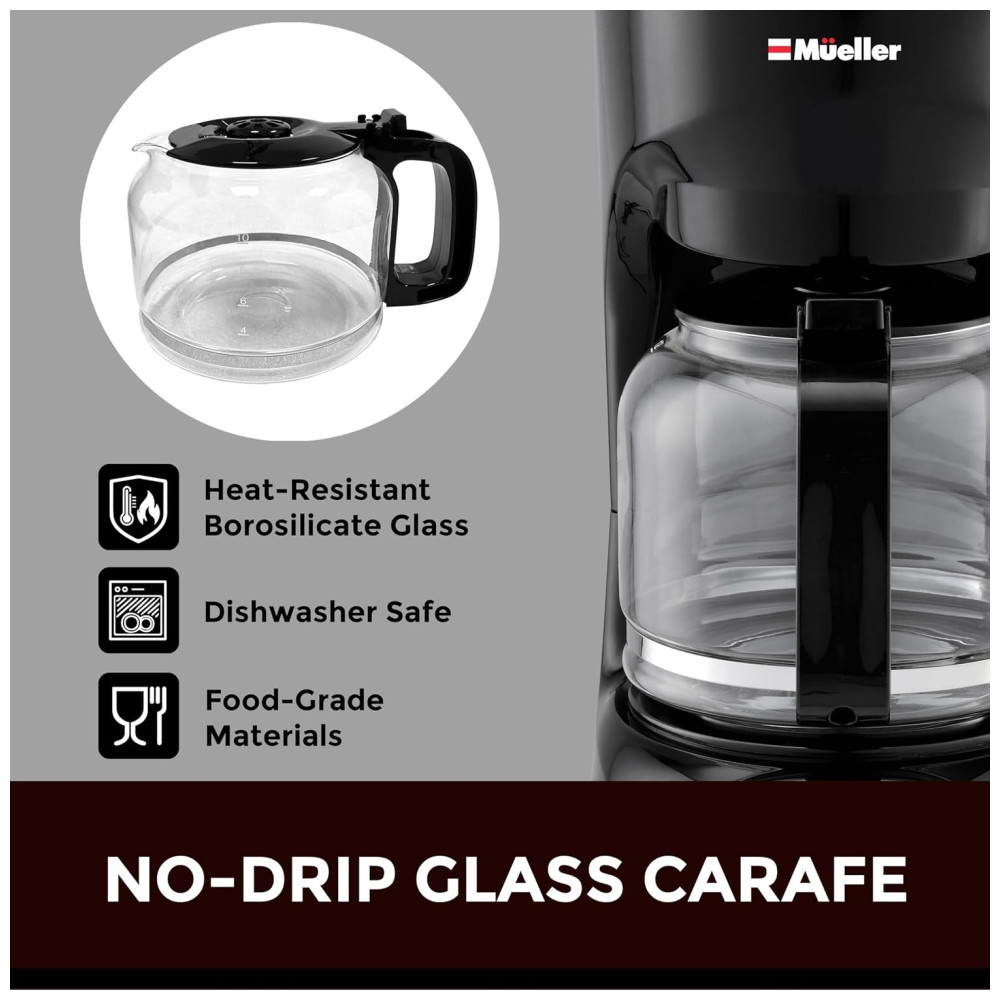 Cafeteira Elétrica 12 Xícaras com Jarra de Vidro e Função de Manter Quente 110V Mueller DC 550 Preta