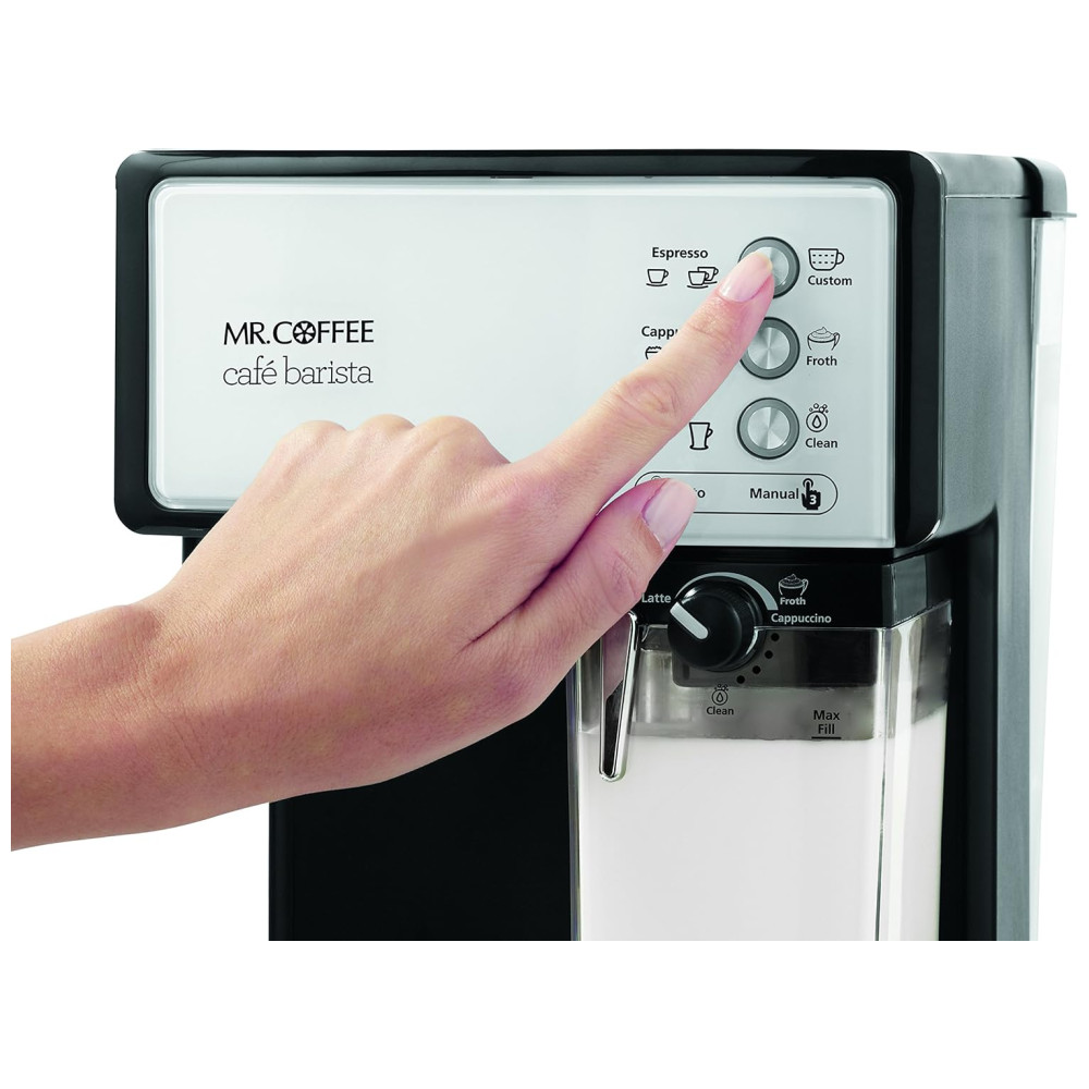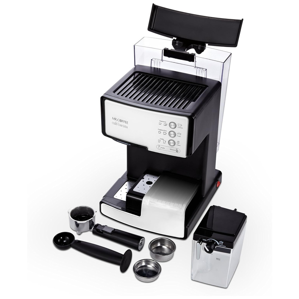 Elabore espressos, cappuccinos e lattes deliciosos e robustos com a qualidade de um café com o Mr. Coffee Café Barista. Apresentando uma bomba elétrica de 15 bar que cria uma pressão poderosa para extrair sabores ricos e arrojados durante a preparação. Qualquer pessoa pode se tornar um especialista em cafés com a máquina de café expresso simples de usar. Os controles de um toque permitem escolher entre disparos simples ou duplos e espuma de leite automaticamente com um botão de controle ajustável. O reservatório de leite é removível para zenar na geladeira as sobras de leite não aproveitadas durante o preparo, basta enchê lo e deixar que o Café Barista determine a quantidade necessária. Um livro de receitas está incluído para criar facilmente bebidas impressionantes de café ou inspirá lo a inventar receitas originais, tudo no conforto da sua casa