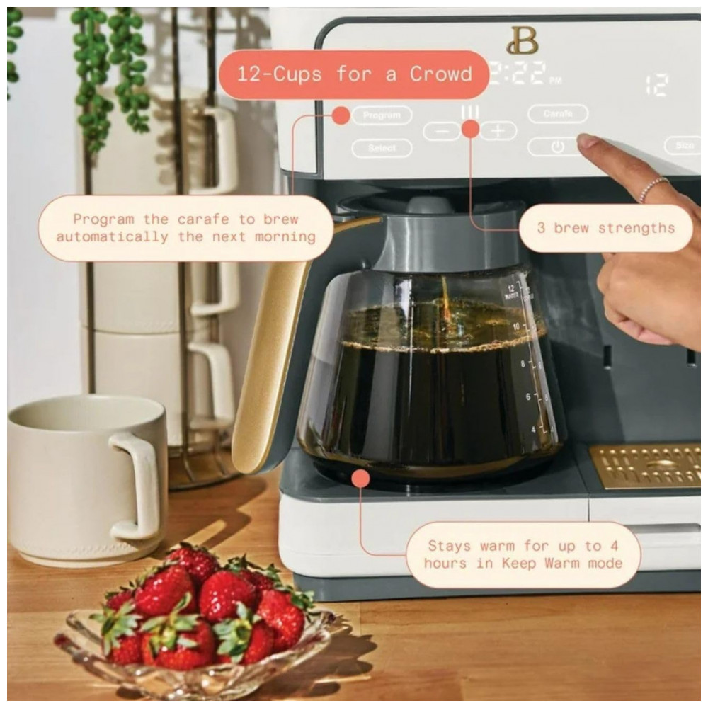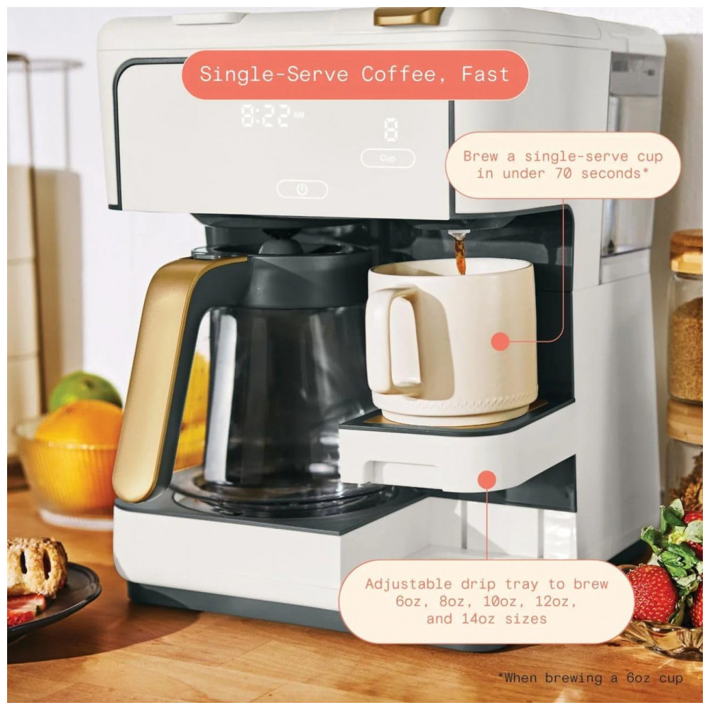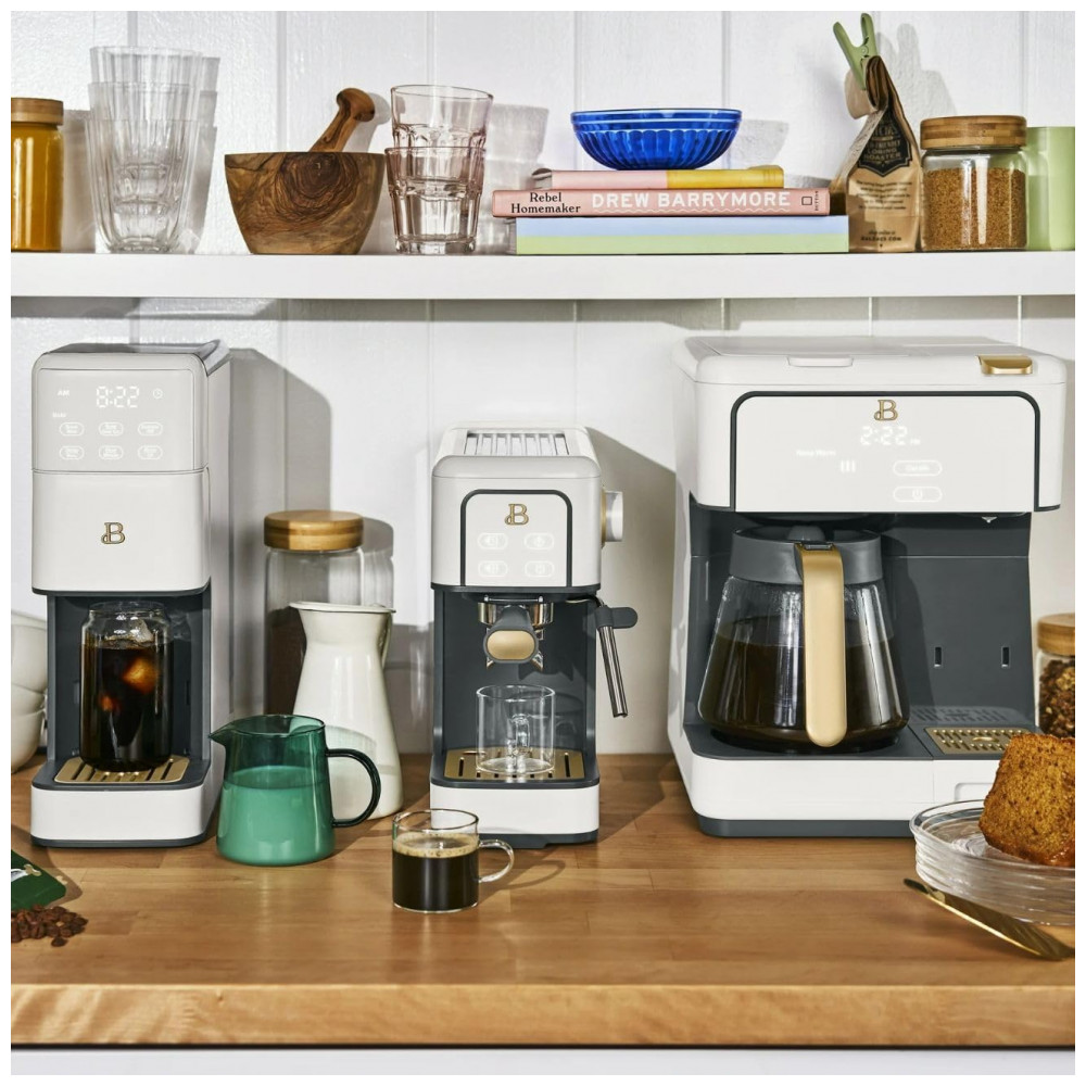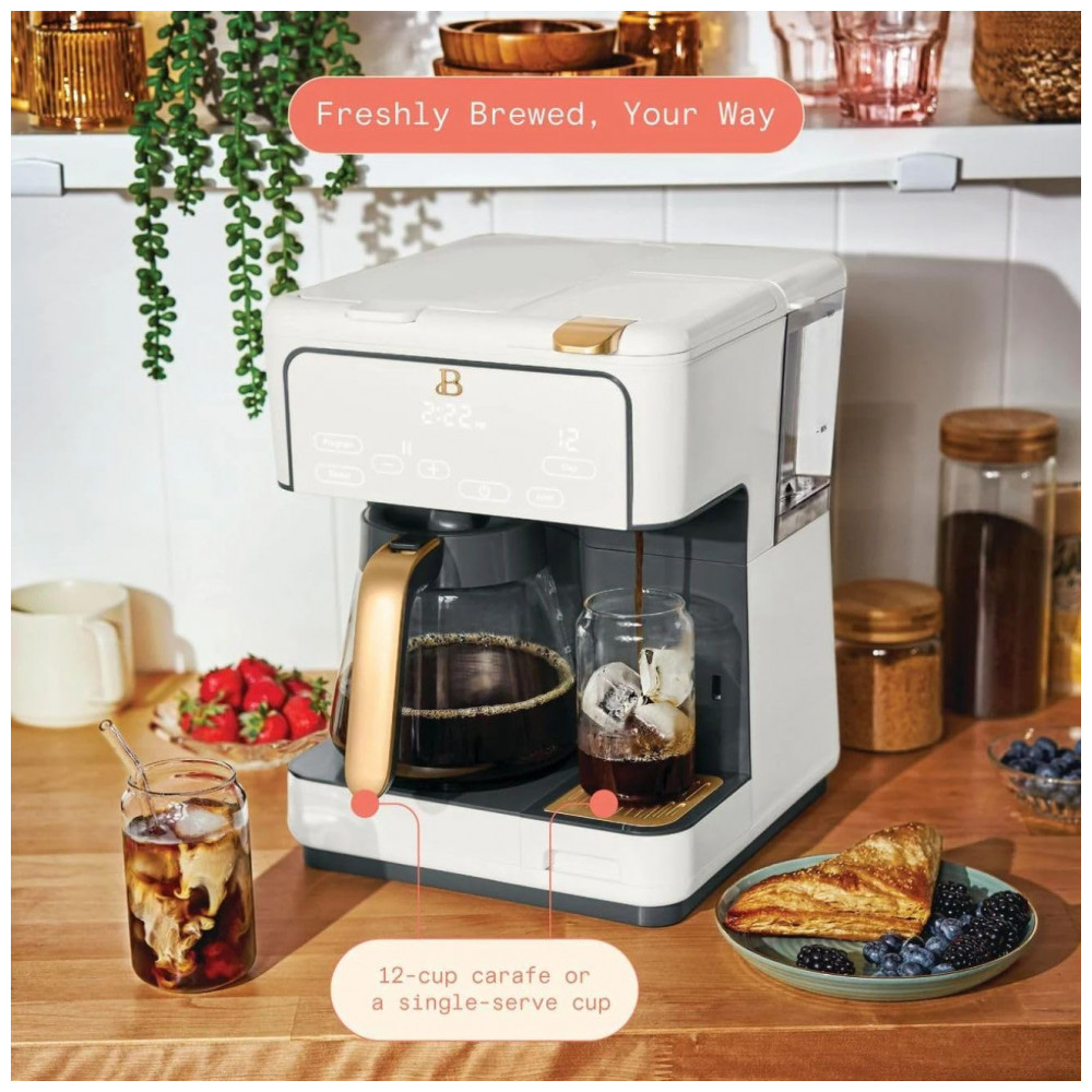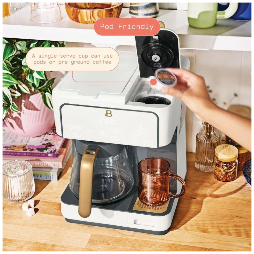 Cafeteira elétrica Beautiful Multi-Brew branca 12 xícaras dose única cápsula ou pó modo gelado painel touch programável 110V