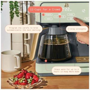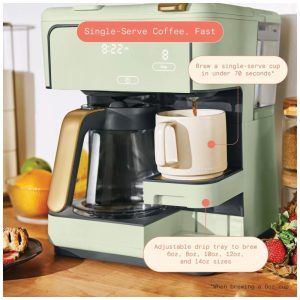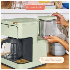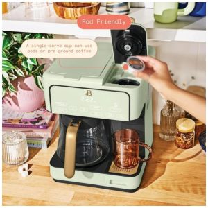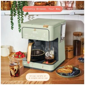 Cafeteira elétrica Beautiful Multi-Brew verde 12 xícaras dose única cápsula ou pó modo gelado painel touch programável 110V