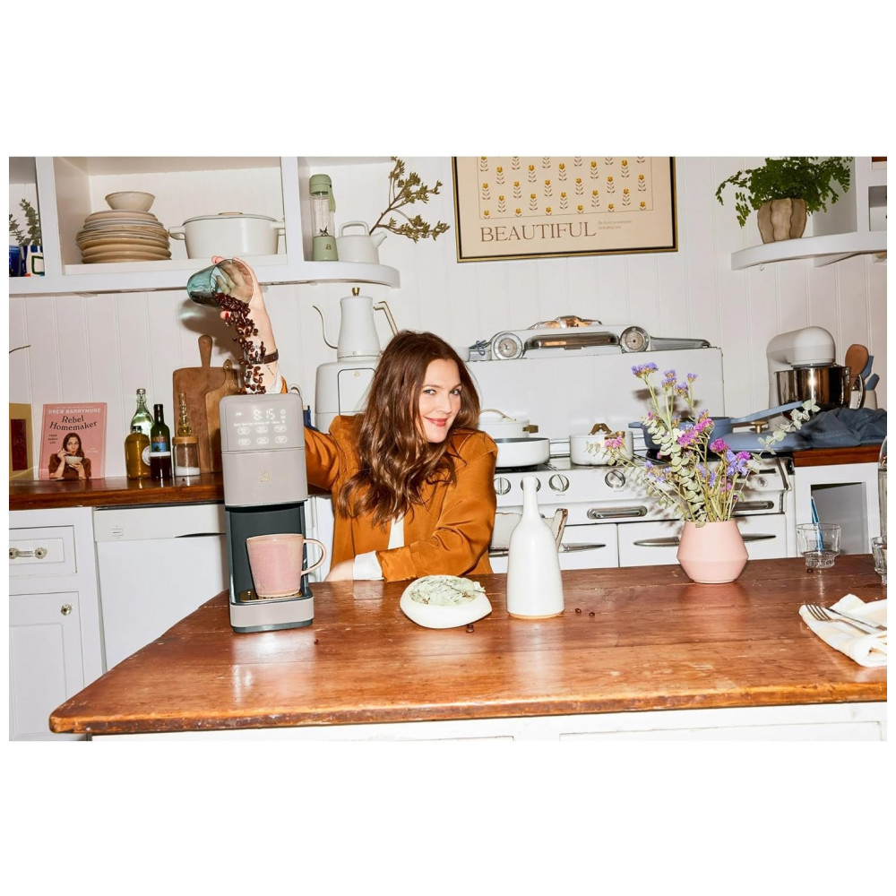 Cafeteira elétrica Beautiful Perfect Grind bege single serve moedor cônico integrado reservatório 19L 6 tamanhos de xícara 110V