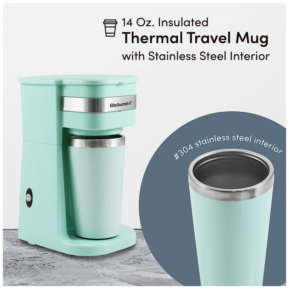 Cafeteira Elétrica Compacta com Caneca Térmica para Viagem 400 mL Elite Gourmet EHC113M 110V 600W Verde Hortelã