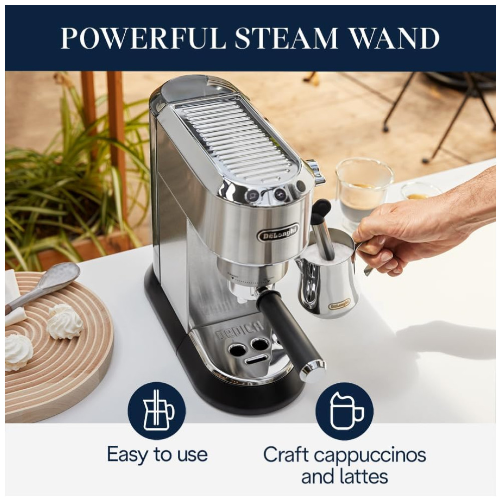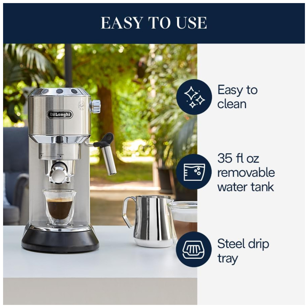 FÁCIL DE USAR A máquina faz a maior parte do trabalho para você. O recurso de parada automática de fluxo dispensa apenas a quantidade certa de café expresso, enquanto mantém a temperatura ideal de infusão.