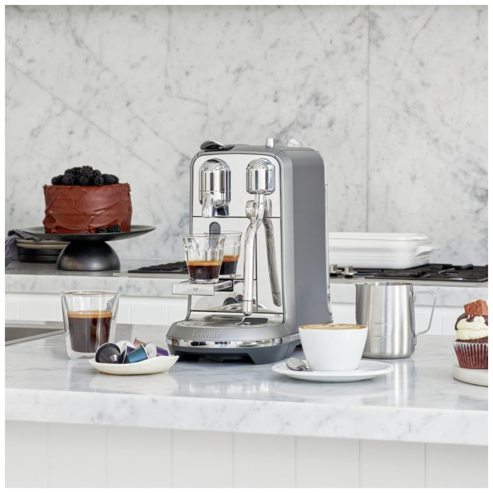 MÁQUINA DE SERVIÇO ÚNICO DE CAFÉ E EXPRESSO O Nespresso Creatista Plus oferece café acabado de fazer e um delicioso e autêntico café expresso. O Creatista plus pode se transformar no seu criador de latte pessoal com o espumador de leite anexado, permitindo que você crie latte de alta qualidade em sua cozinha. Despeje sobre o gelo para criar suas bebidas favoritas de café gelado.