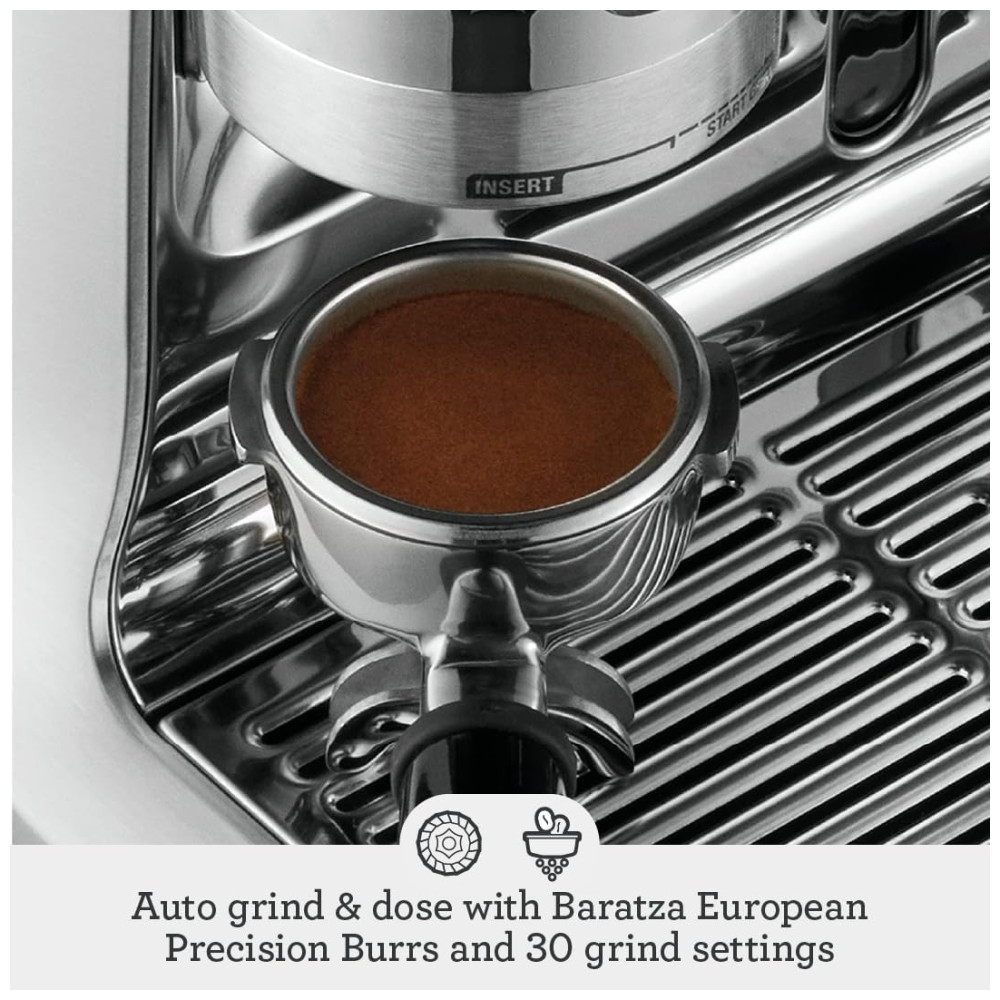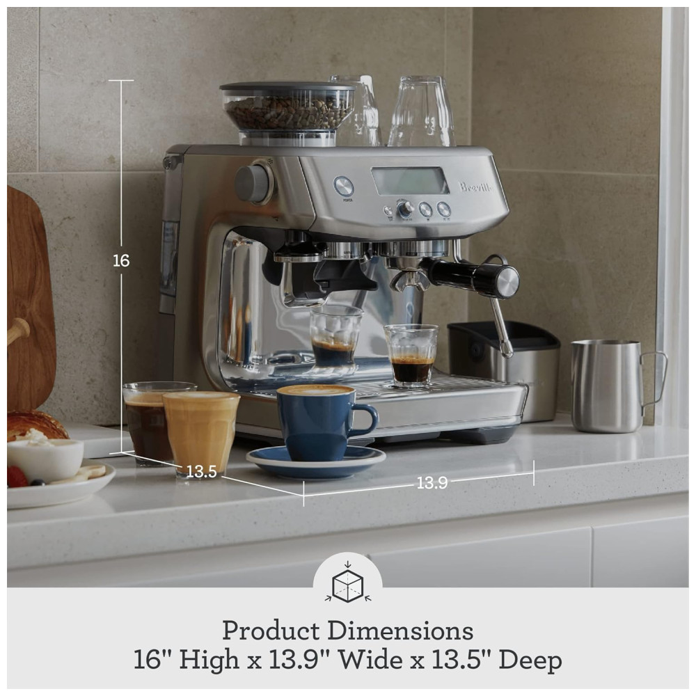 O Breville Barista Pro oferece café especial de terceira onda em casa usando a fórmula de 4 chaves e faz parte da Série Barista que oferece máquinas de expresso com moedor integrado para ir de grãos a expresso em menos de um minuto